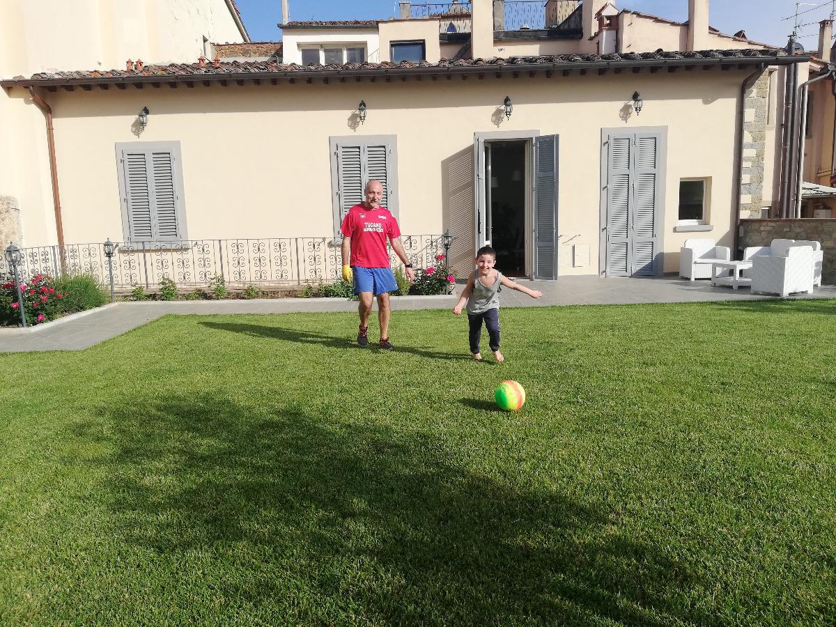 La CASA è ampia e spaziosa con gli spazi prospicienti un giardino pensile medievale di 350 mq al piano della casa: una grande zona di ingresso con due divaniletto comodi e di fattura italiana, 2 camere matrimoniali, 2 bagni, una cucina ampia e fornita da veri chef, una tavola accogliente, un camino per godere di grigliate in compagnia, un giardino con salottino esterno per fare colazione a piedi nudi nell'erba o giocare liberamente ed in sicurezza ne fanno un angolo di pace, relax e silenzio unico.