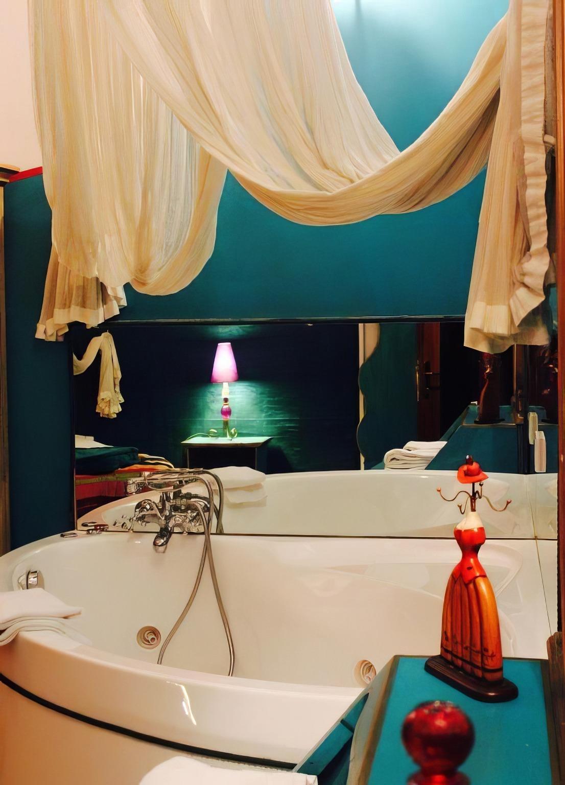 The Sultanate warmly welcomes travelers—those who embrace our philosophy, who appreciate playfulness, who value the reuse of items, creativity, color, and ironic luxury. It appeals to those who understand that imperfection is part of the charm, who love the beauty of 1950s fixtures, even if they are not flawless, and the history carried by wooden shutters. Vibrant curtains and vintage elevators add to the atmosphere. However, we respectfully invite tourists seeking a standard style—those wanting white, gray, or brown rooms with Ikea furniture and self-closing elevator doors—to seek their habitat elsewhere, among the many B&Bs that have emerged in the city in recent years.