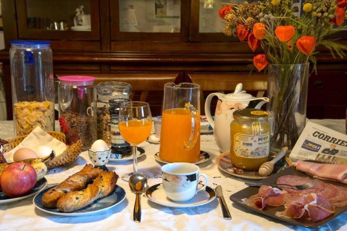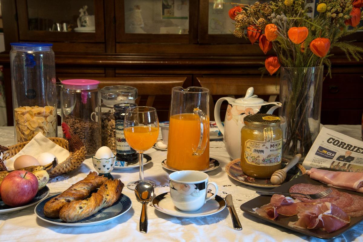 Here's what our breakfast includes: jam, butter, yogurt, multivitamin juice, water, biscotti, pizzelle, whole almonds, sugared almonds, chocolate-filled biscuits, puff pastry biscuits, shortbread biscuits, chocolate shortbread biscuits, croissants, cornflakes, All Bran, small donuts, Coco Pops, muesli, Nesquik, Ovomaltina, Orzoro, coffee, tea, hot/cold milk, eggs, cheese, garden tomatoes, home-grown fruit, high-quality extra virgin olive oil, etc.