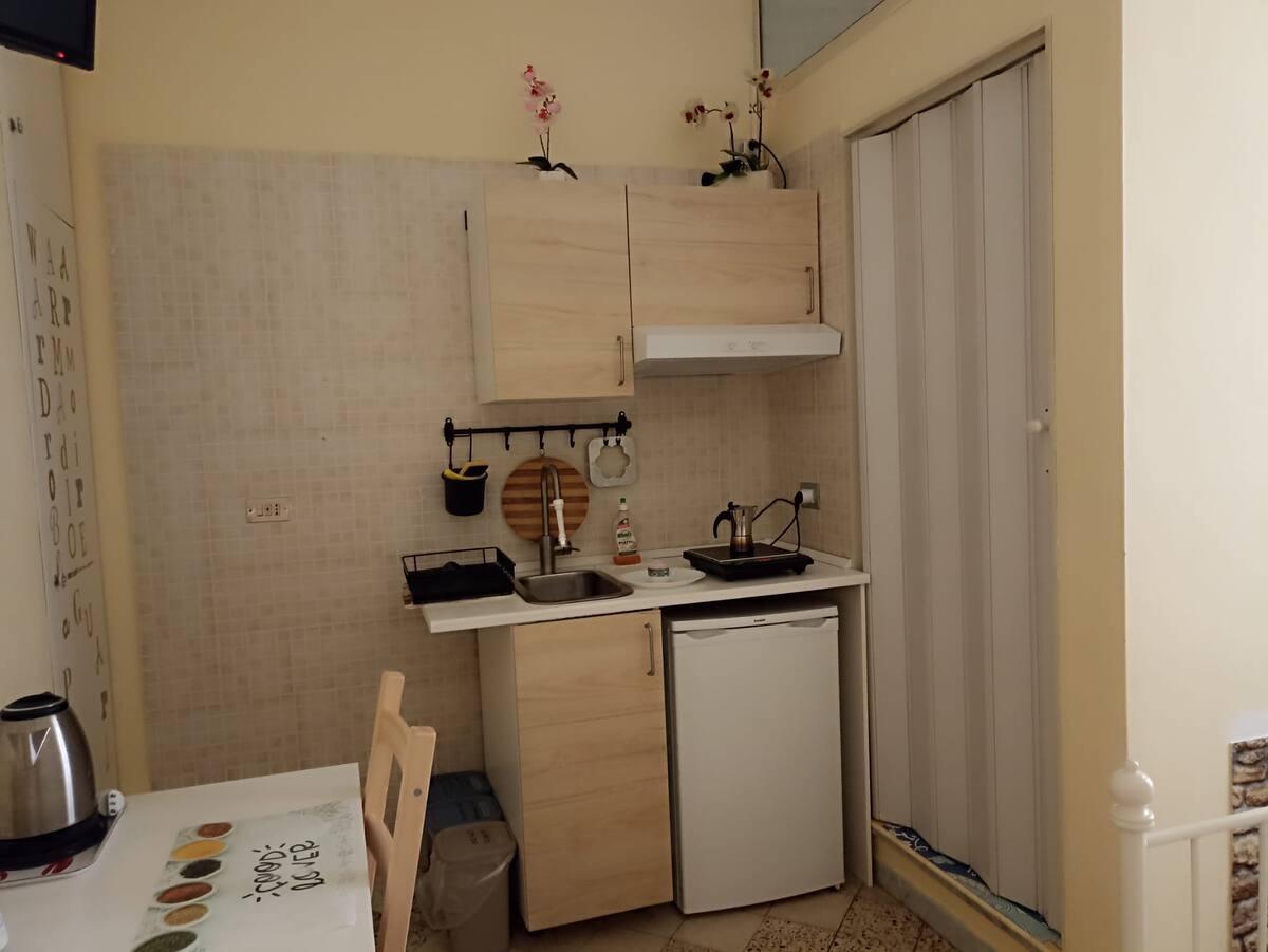 camera matrimoniale con angolo cottura e bagno privato.