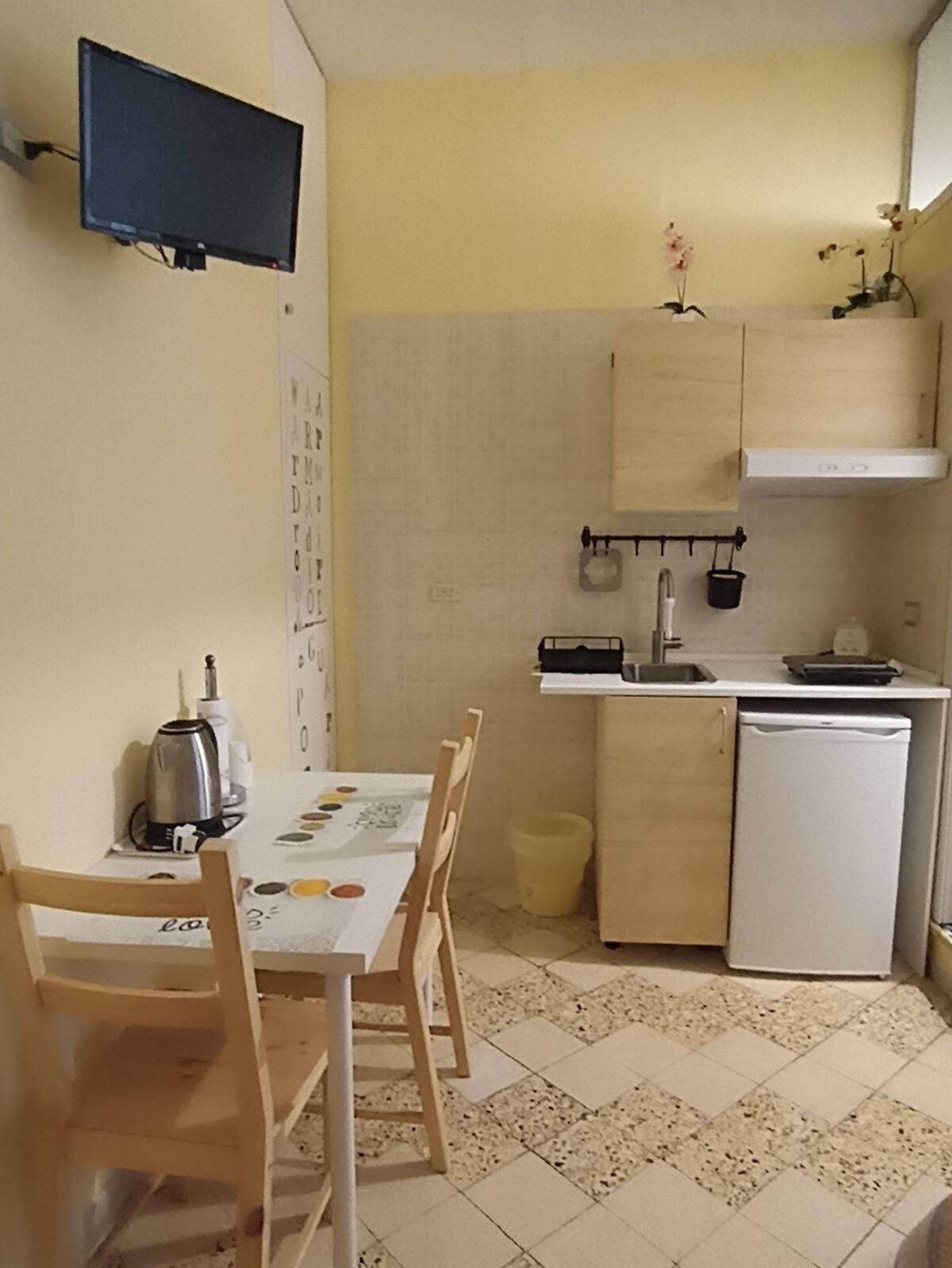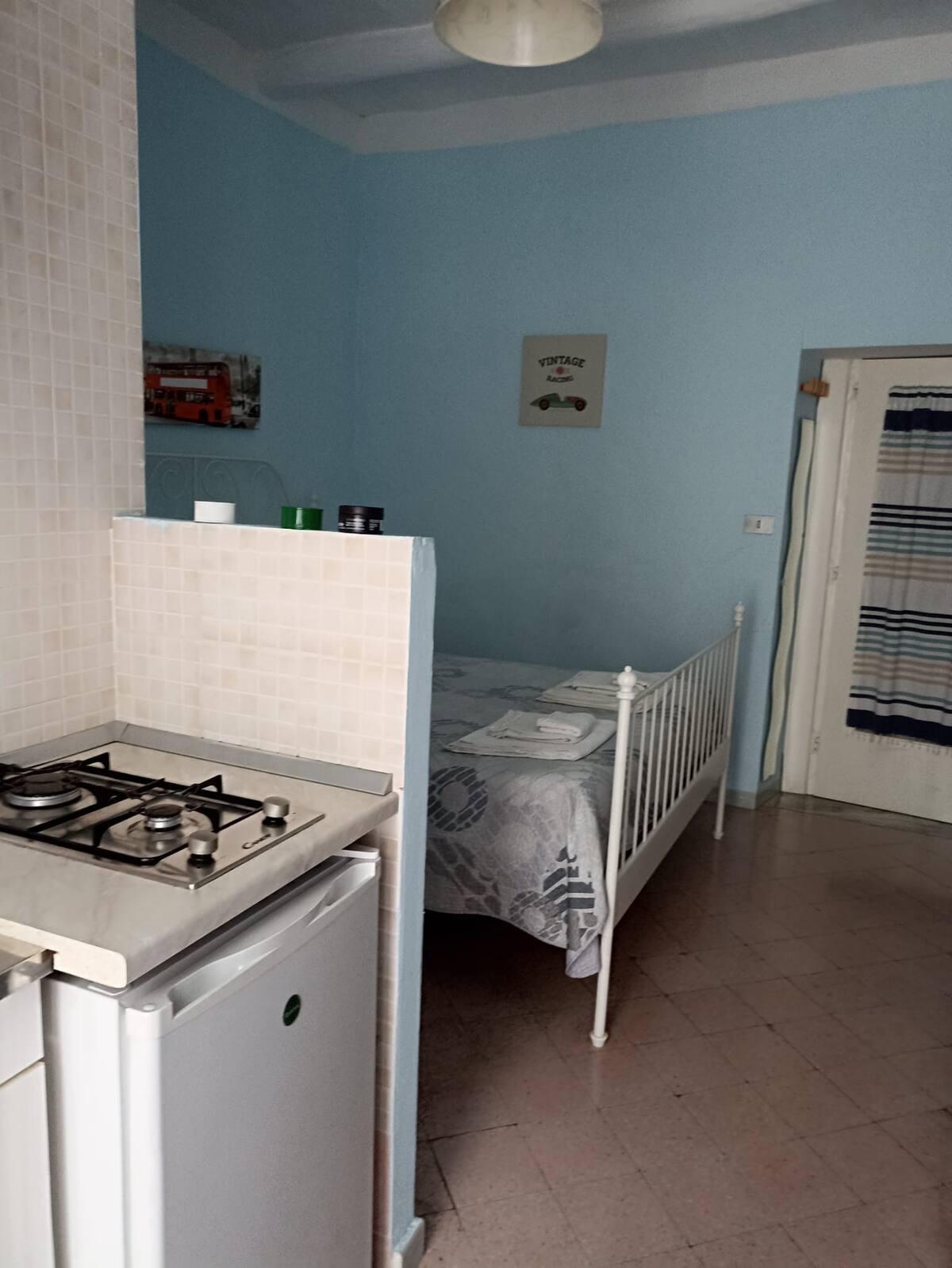 Camera matrimoniale con angolo cottura e bagno privato.