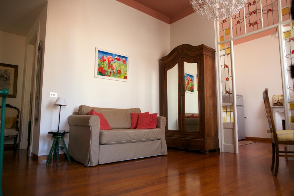 The accommodation is situated on the second floor and features spacious and well-organized areas, perfect for both couples and families. It includes a bright living room with a sofa bed option, a fully equipped kitchen, a double bedroom with views of the village, a private bathroom with a shower and bathtub, and a small terrace overlooking the historical surroundings. The ambiance is that of a charming residence, designed for those who appreciate authentic places without sacrificing comfort.