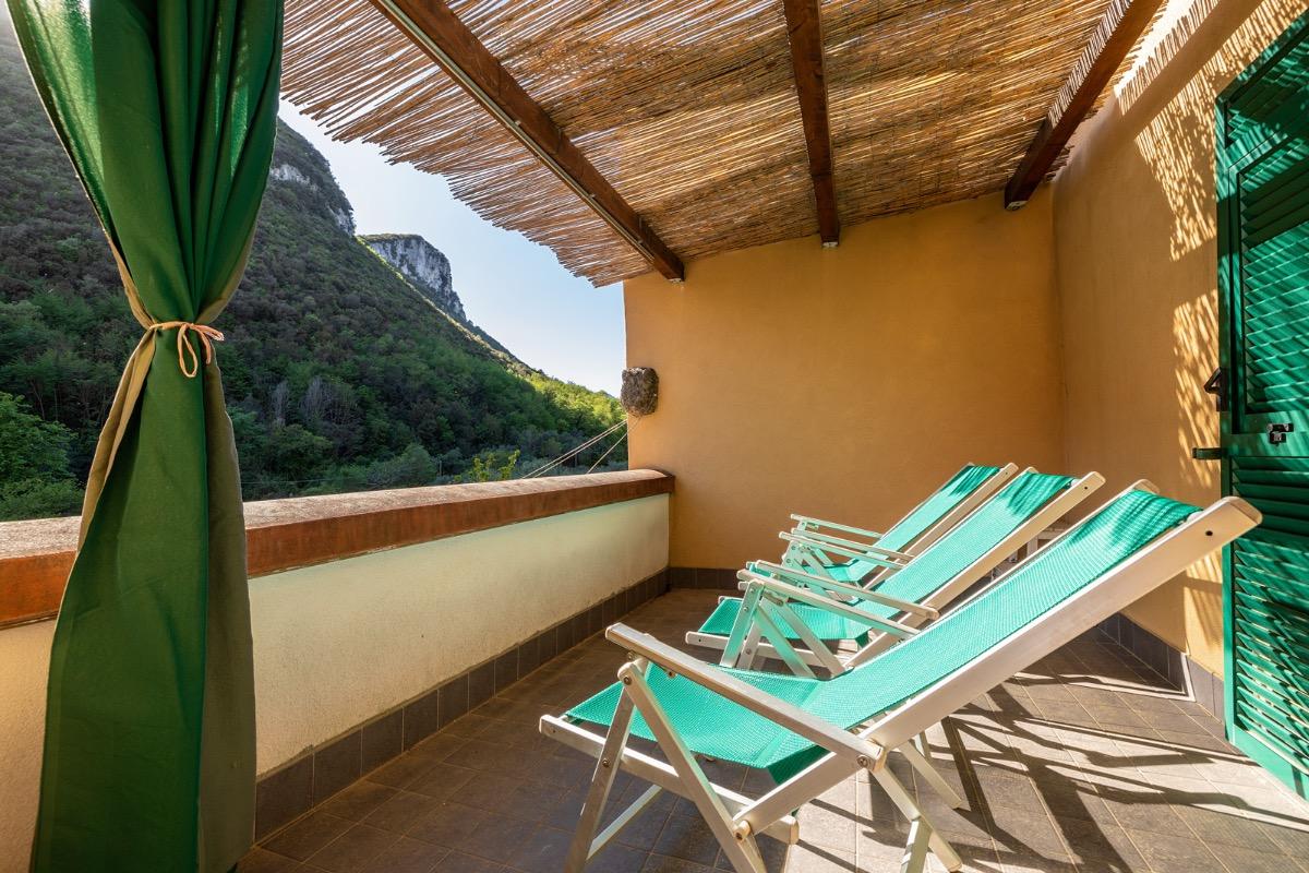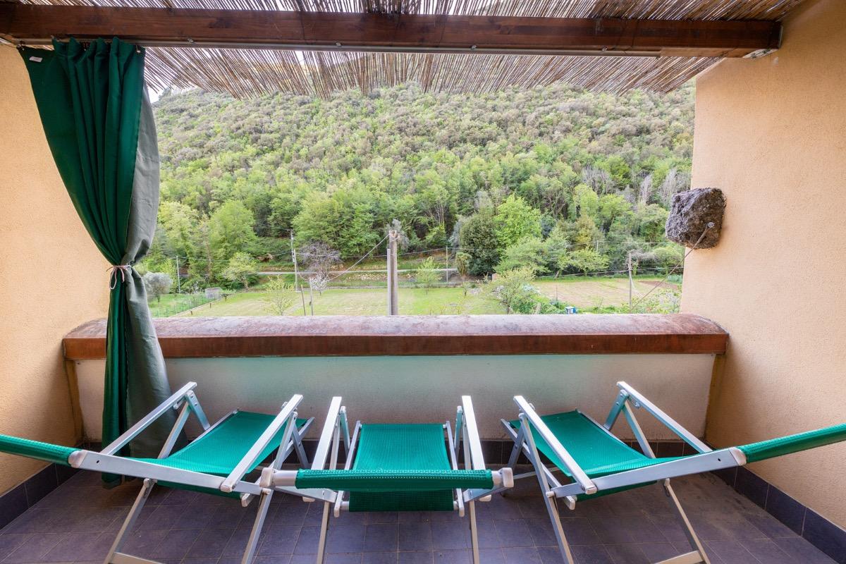 Nel terrazzo ci sono 3 sedie a sdraio ed è confortevole leggere un libro prima di uscire a cena. Inoltre, la sera, è possibile osservare il cielo brillare di stelle, ascoltare il canto delle cicale e delle rane o stupirsi ancora seguendo il luccichio delle lucciole nel mese di giugno.
