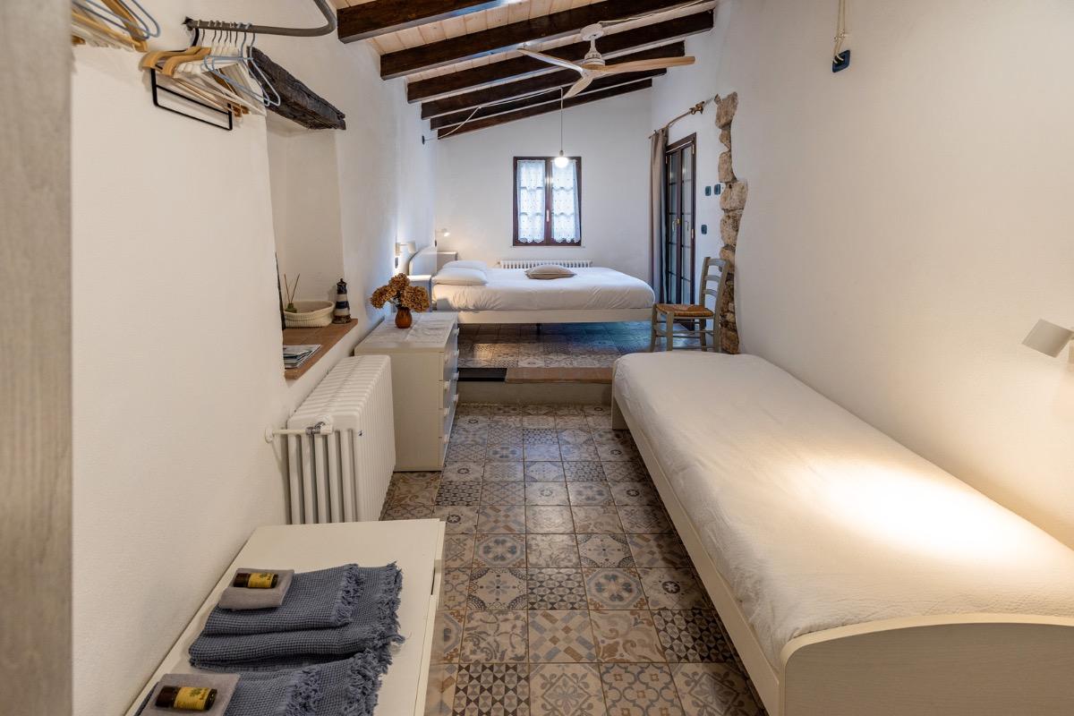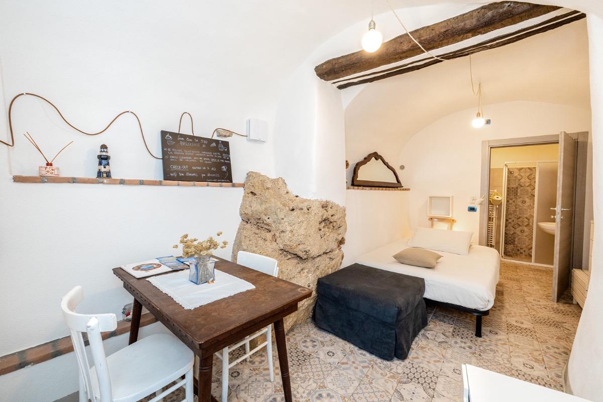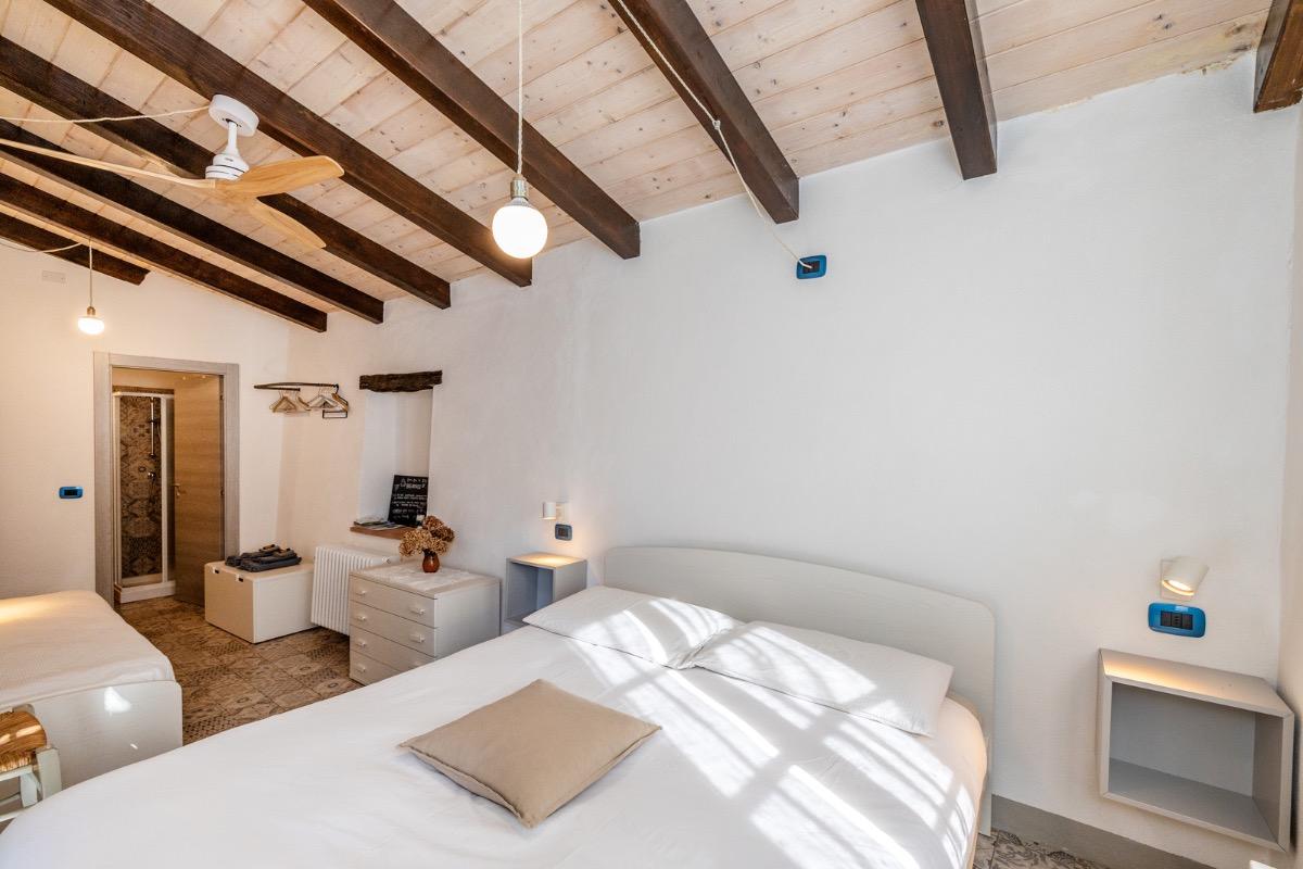 Camera accogliente con accesso indipendente, si affaccia direttamente sul nostro cortile dove in estate serviamo le nostre super colazioni cucinate con amore e con prodotti a km zero, scegliamo farine biologiche e amiamo andare incontro alle scelte alimentari di tutti i nostri ospiti. Dopo una giornata di mare o di sport potrete rilassarvi nell’area riservata sotto al pergolato d’uva. La camera ha un comodissimo letto alla francese con cuscini in memory foam, non c’è una finestra, ma la porta della stanza è dotata di lunotto per l’aria e di zanzariera.