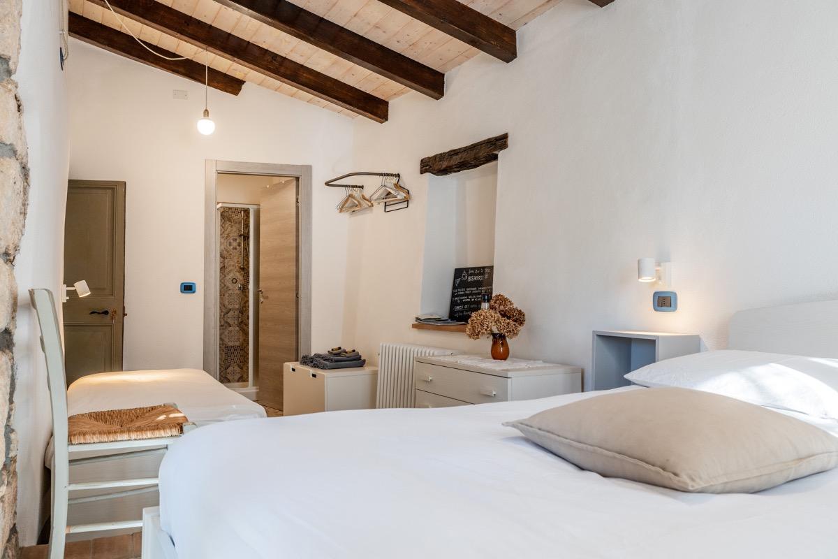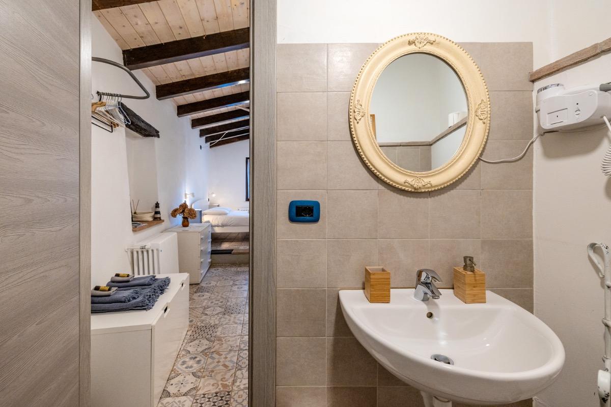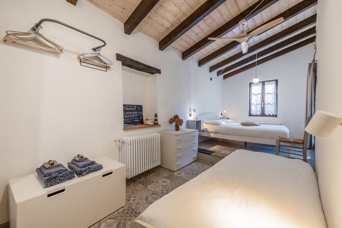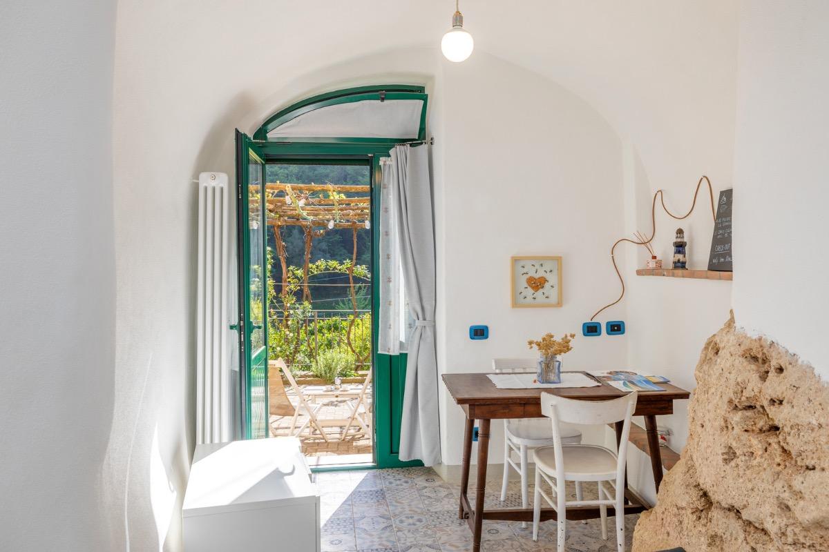 Camera accogliente con accesso indipendente, si affaccia direttamente sul nostro cortile dove in estate serviamo le nostre super colazioni cucinate con amore e con prodotti a km zero, scegliamo farine biologiche e amiamo andare incontro alle scelte alimentari di tutti i nostri ospiti. Dopo una giornata di mare o di sport potrete rilassarvi nell’area riservata sotto al pergolato d’uva. La camera ha un comodissimo letto alla francese con cuscini in memory foam, non c’è una finestra, ma la porta della stanza è dotata di lunotto per l’aria e di zanzariera.