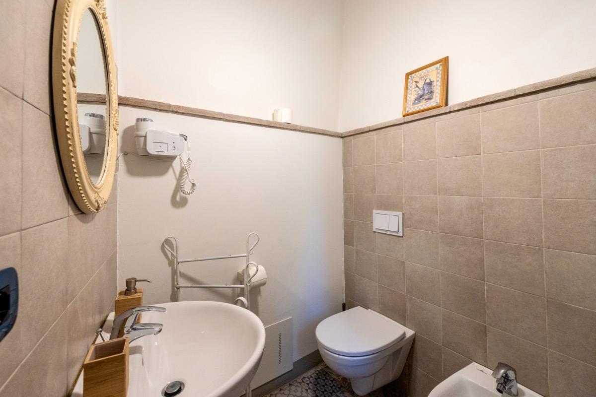 Nel bagno troverete del bagnoschiuma e sapone per le mani in dosatori ricaricabili.