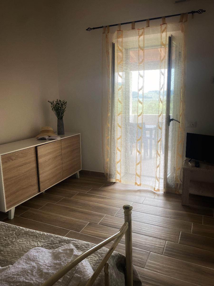Gli alloggi dell'agriturismo sono divisi in monolocali e bilocali. Entrambe le tipologie offrono un angolo cottura (interno o esterno a seconda del tipo) attrezzato con utensili, frigorifero e piano cottura; un bagno con doccia e terrazze coperte con tavolo e sedie. Gli alloggi sono situati al primo piano e vantano una vista sulla piscina o sul giardino. La struttura offre anche una connessione Wi-Fi, una lavatrice e un barbecue a disposizione dei nostri ospiti, oltre a un parcheggio, un tavolo da calcio balilla, una piscina, un'area giochi per bambini e un ristorante. L'agriturismo si trova a soli 2 km dalla prima spiaggia, a 4 km dalla Foresta Umbra e a 7 km dal centro abitato.