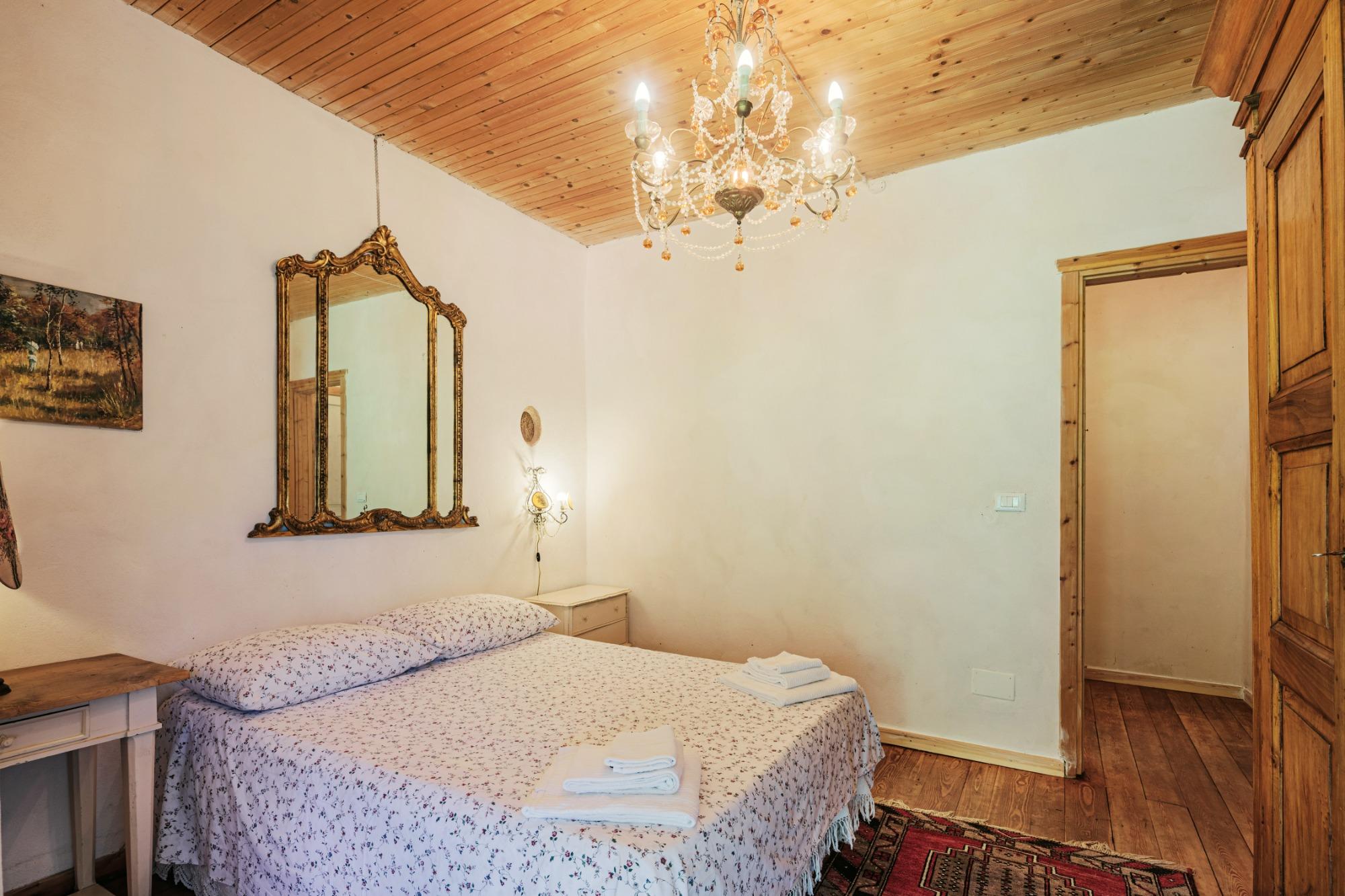 Questo è dotata di letto matrimoniale, stufa a legna, angolo cottura, bagno privato con doccia ed accesso indipendente a terrazza e giardino privati.