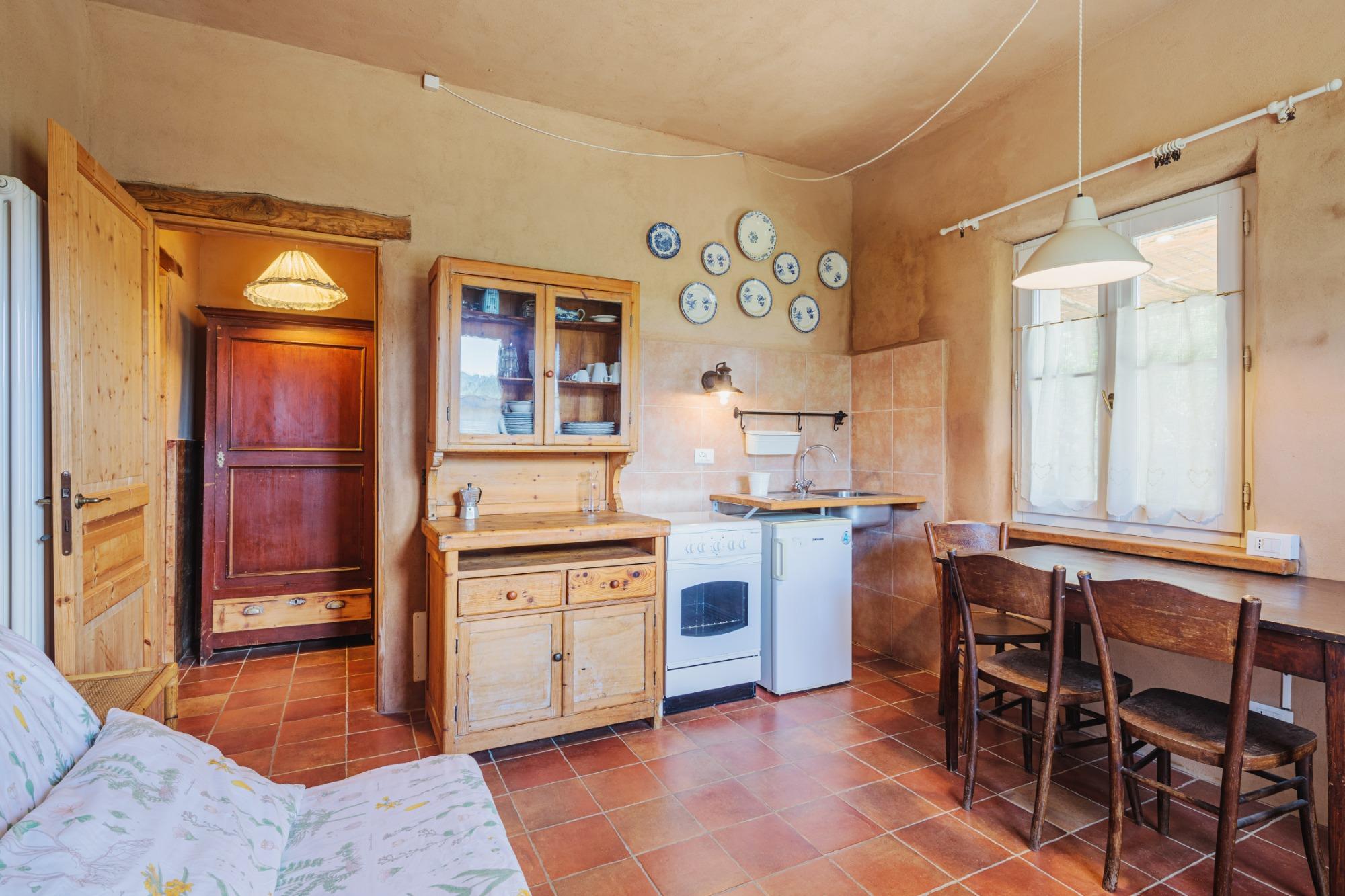 L'alloggio è una struttura indipendente situata vicino al ristorante, ed è dotata di intonaci naturali in terra cruda ed arredata con autentico mobilio d'antiquariato.