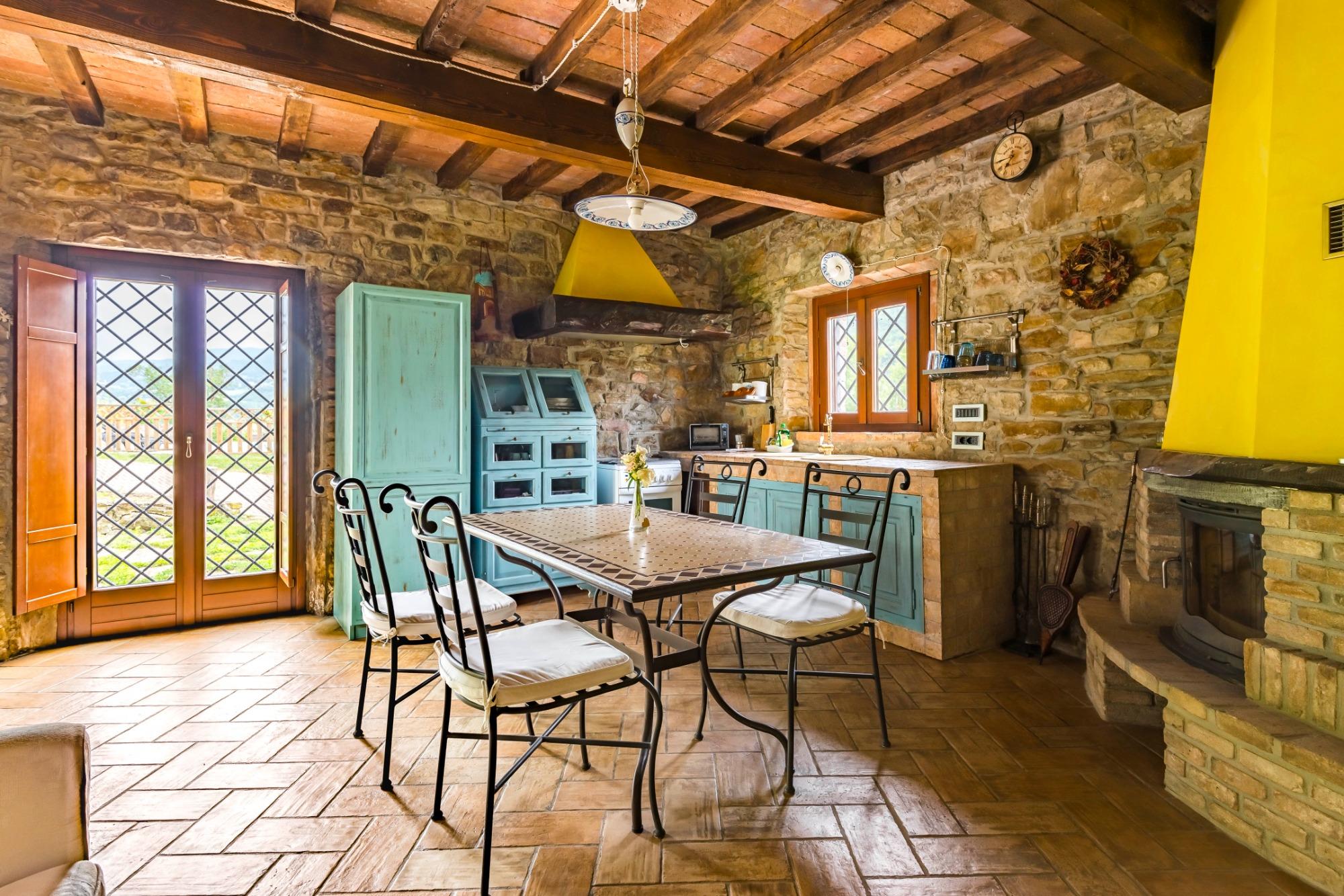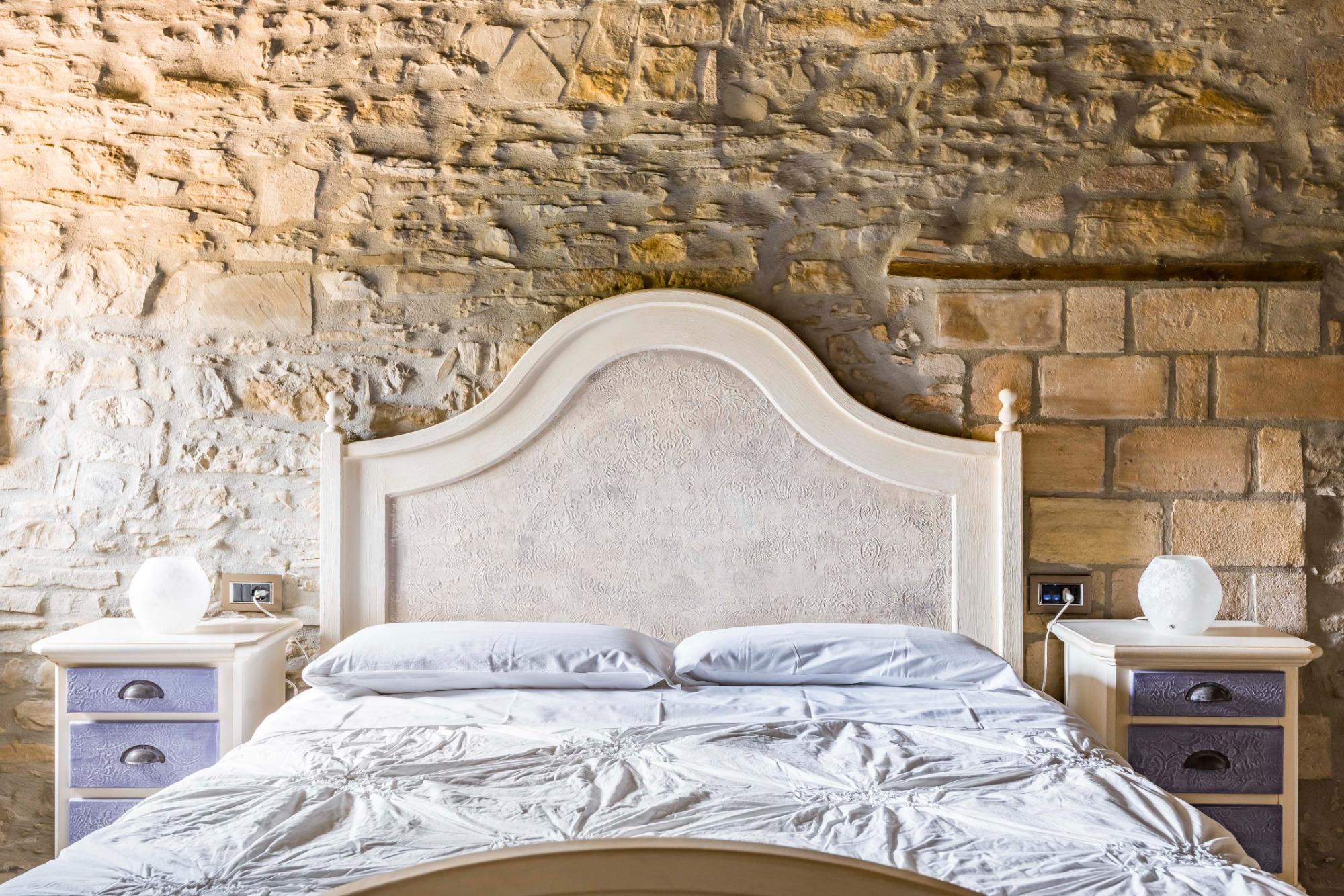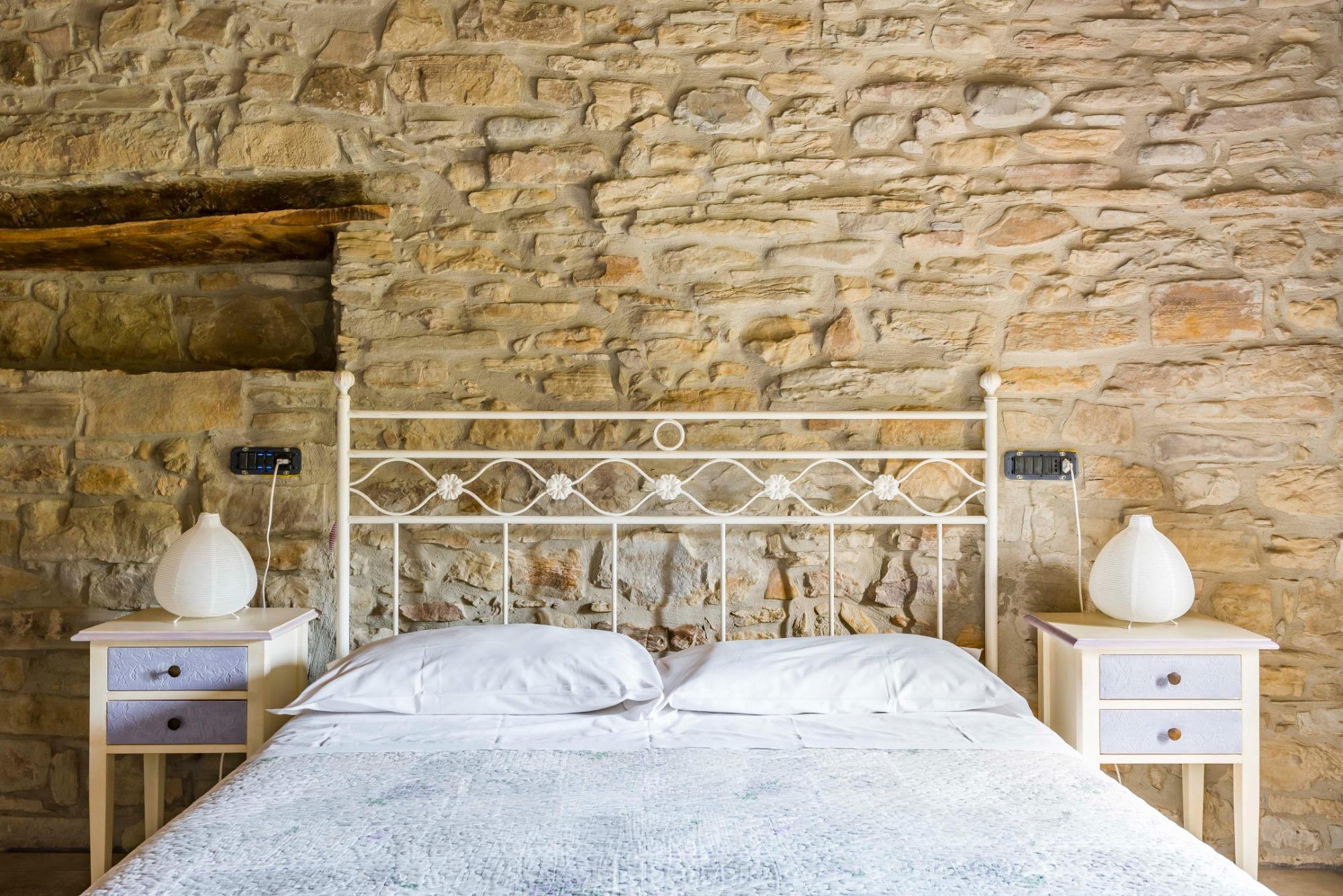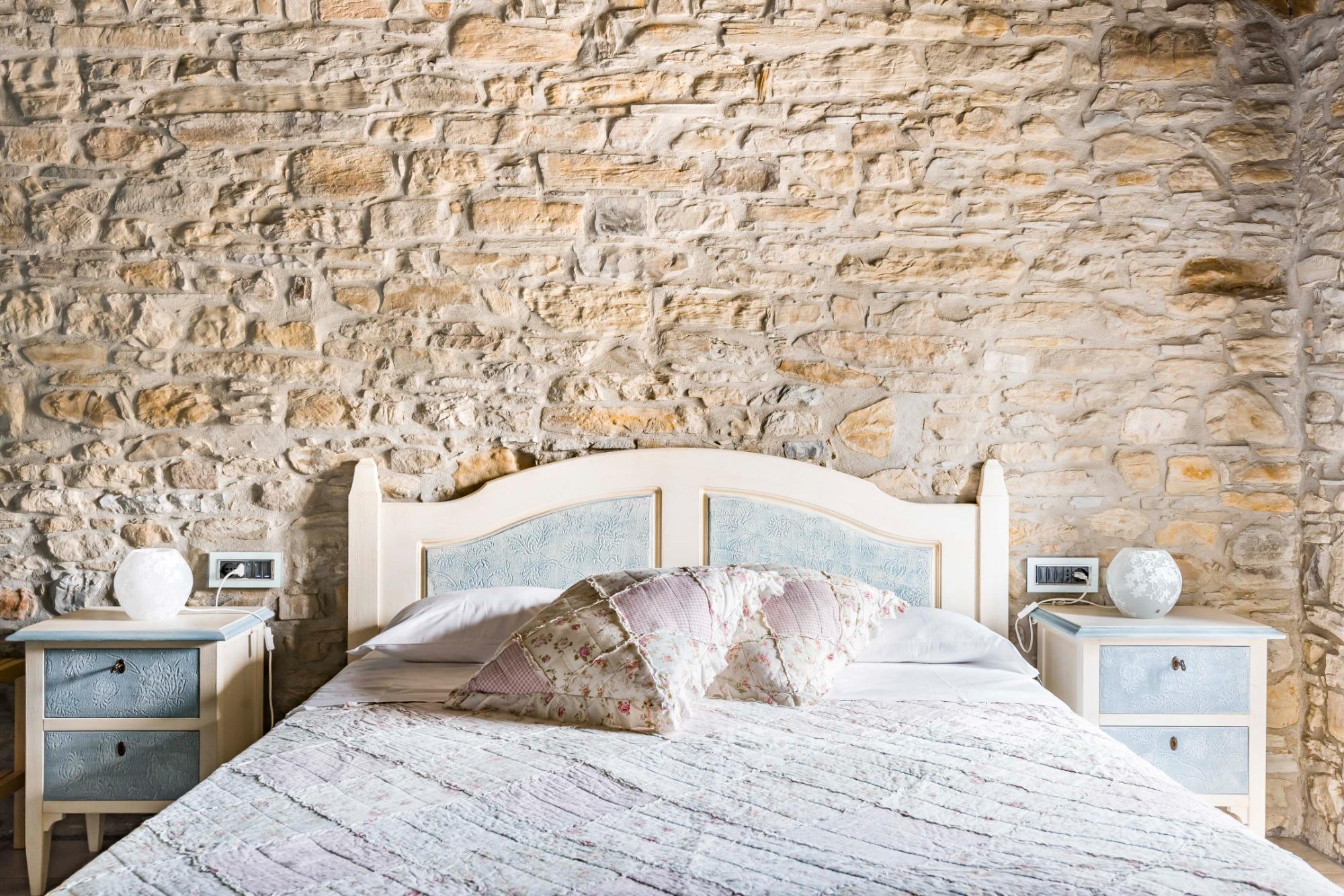 La camera Non ti scordar di me è situata al primo piano della struttura con affaccio sui campi circostanti. Collocandosi nella parte finale della struttura il gioco delle travi rende questa camera la più bella grazie anche all’atmosfera del sasso a vista. Il bagno privato ha un’ampia doccia a filo pavimento. La camera è caratterizzata dal colore del fiore Non ti scordar di me ovvero su un azzurro pastello molto rilassante.