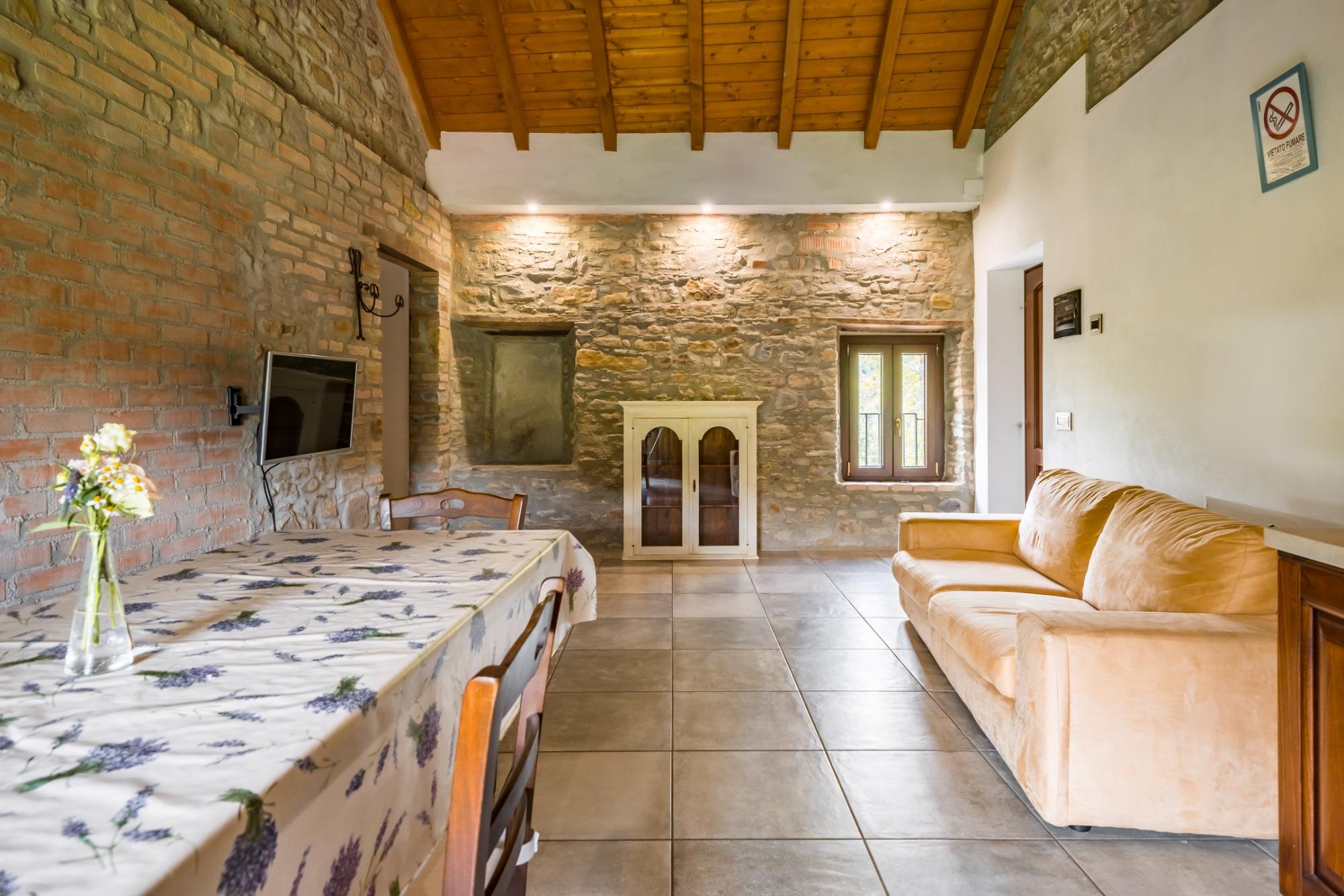 Appartamento indipendente di 70 mq disposti su due livelli + 35 mq di portico. Piano terra con soggiorno/cucina e bagno, piano primo open space con letti. Letto matrimoniale, letto una piazza e mezza, divano, bagno con ampia doccia, cucina abitabile con 4 piastre con pentole e stoviglie incluse, frigorifero con cella freezer, 2 tv al plasma con canali satellitari, affaccio vista fiume, possibilità di aggiungere letto extra e/o letto matrimoniale, possibilità di essere accompagnati da animali domestici, appartamento non fumatori, due livelli 70 mq+ 35 mq di portico.