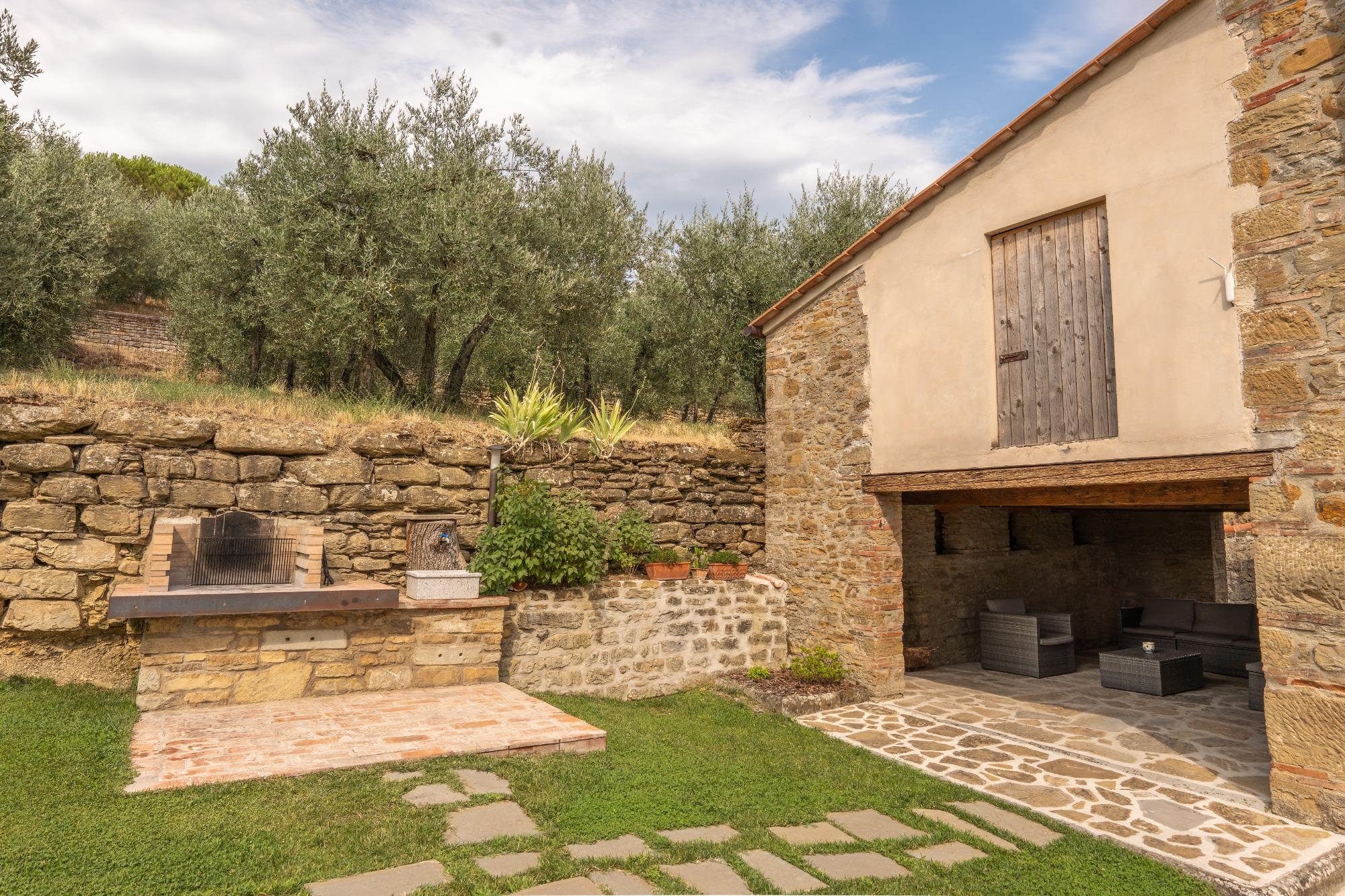 El agroturismo Le Tufe es una encantadora casa rural toscana de piedra ubicada en Arezzo, en la localidad de Marcena 61. Este lugar ofrece un parque cerrado, hermosos jardines y una espléndida piscina. La estructura, de dos pisos, está compuesta por espacios comunes como la entrada, un baño accesible para personas con discapacidad, un comedor, una cocina, una sala de estar en el piso superior y un estudio.