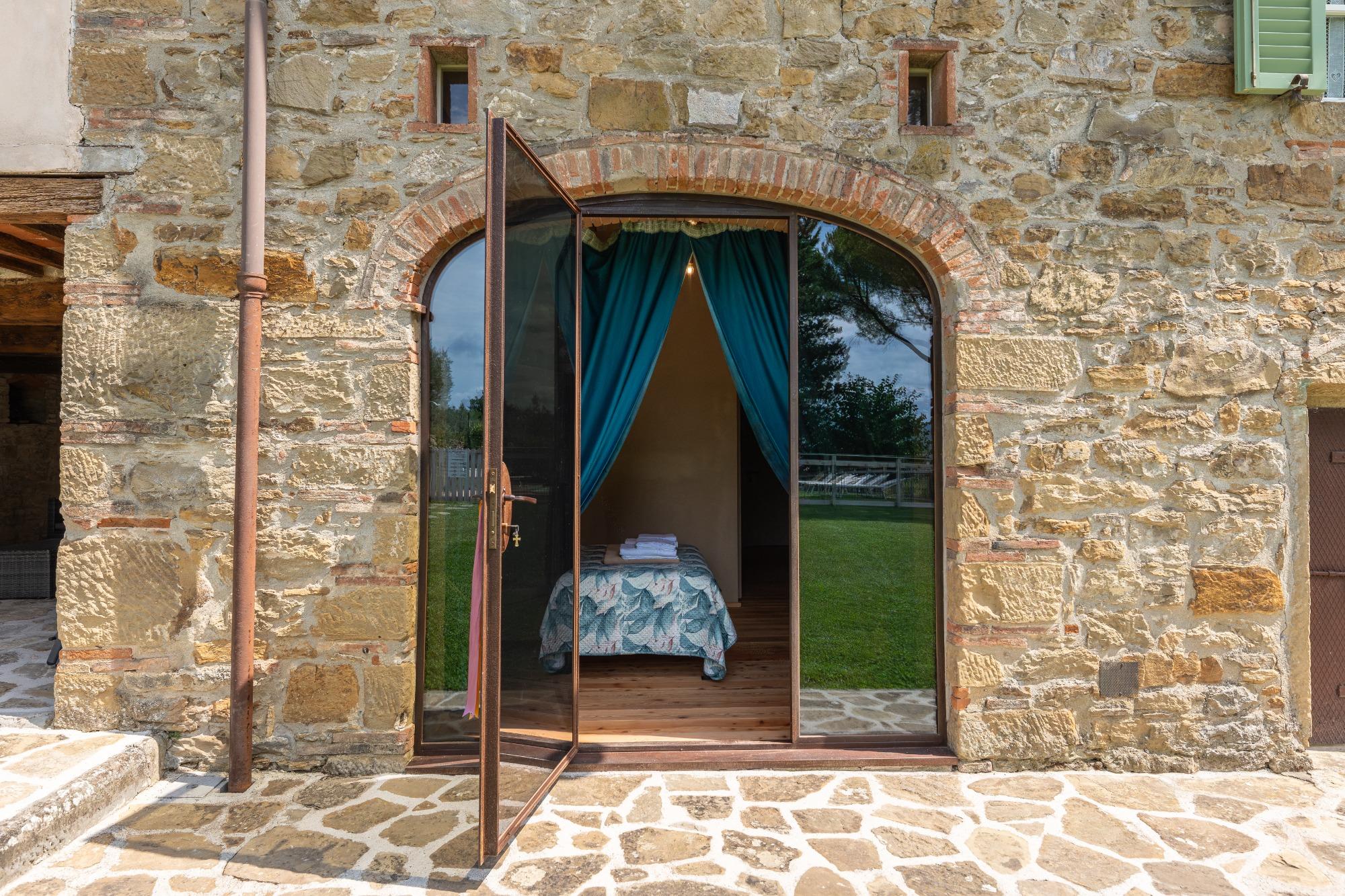 L'agriturismo Le Tufe è un incantevole casolare toscano in pietra situato ad Arezzo, nella località di Marcena 61. Questo luogo offre un parco recintato, graziosi giardini e una splendida piscina. La struttura, su due piani, è composta da spazi comuni come l'ingresso, un bagno accessibile ai disabili, una sala da pranzo, una cucina, un salotto al piano superiore e uno studio. Sono disponibili 5 camere matrimoniali, tutte con bagno privato. In una delle camere è possibile aggiungere un terzo letto. Durante i mesi da aprile a settembre, l'agriturismo Le Tufe mette a disposizione l'intera struttura, compreso il parco e la piscina. La capacità massima è di 10 persone, con eventualmente un letto aggiuntivo. Dal dicembre 2023 e da aprile a settembre 2024, l'agriturismo sarà impreziosito dalle opere originali di Gianlorenzo Palazzi, grazie alla collaborazione con artsharing. La struttura è inserita nei percorsi artistici di Marcena e, durante i periodi di eventi, offre la possibilità di partecipare a visite guidate lungo i sentieri di campagna e presso la casa museo.