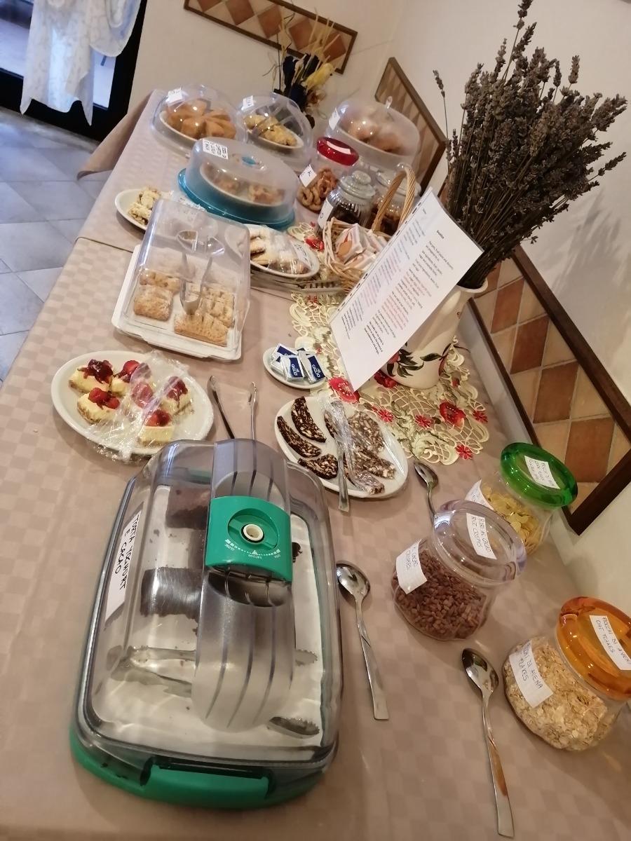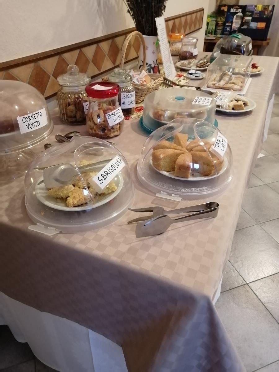 Cakes, pies, biscuits, jams, fruit juices, fruit, cold cuts and cheeses will give you a good morning in the buffet set up in the internal room.