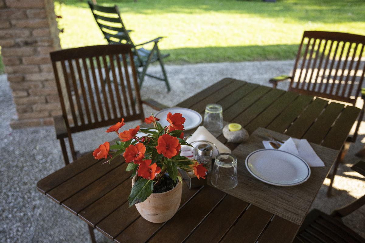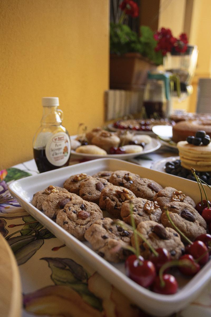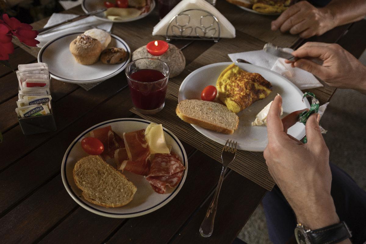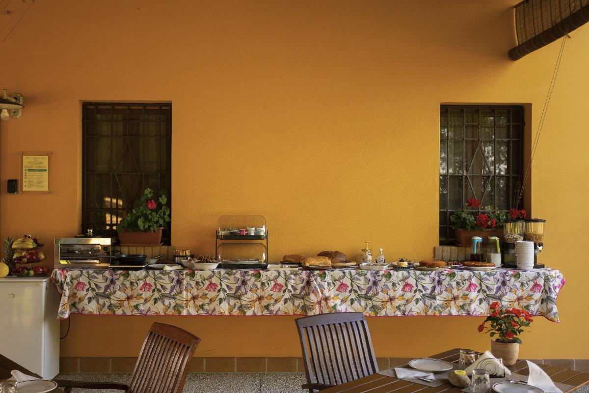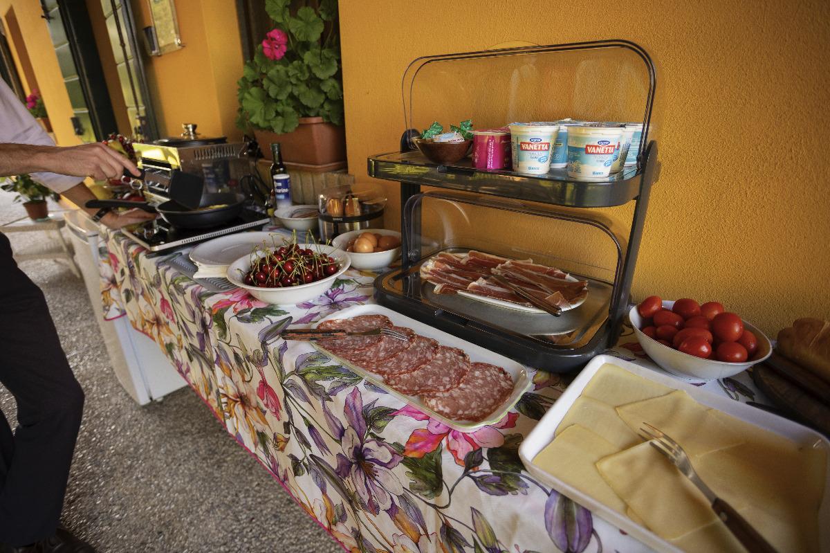 We serve the traditional Italian breakfast, with homemade bread and pastries, croissants, seasonal fruit, yogurt, fruit juices, cappuccino, coffee, tea, milk, corn flakes, toasted bread, butter, and jam. Due to the Covid emergency, we have replaced the traditional buffet with table service breakfast. Weather permitting, it is consumed in the covered patio of the garden.