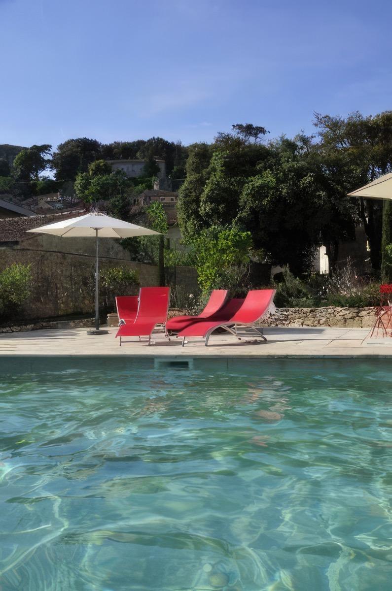 Ai Lecci in Centro is an extraordinary villa in perfect 1950s style, carefully and deeply renovated, immersed in a garden of centuries-old holm oaks and expanses of lawn framed by a gentle variety of Mediterranean shrubs, in the heart of the historic center of Sarteano, Siena. The pool and its solarium embellish the exteriors with grace and discretion, while the presence of the 15th-century Collegiate Church of San Francesco gives mysticism and rigor.