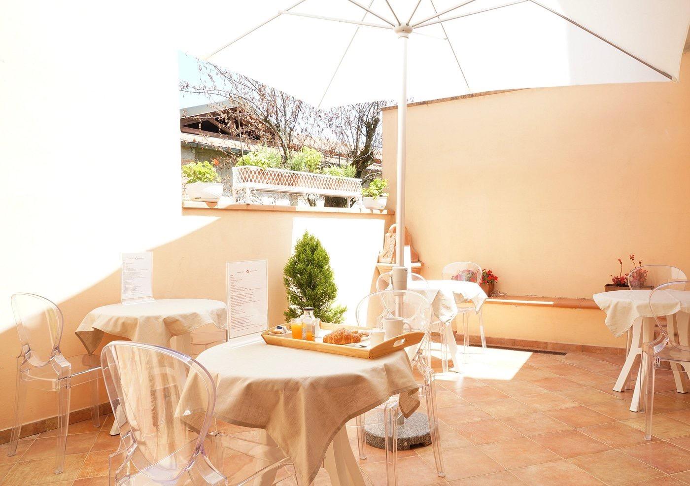 Ogni mattina viene proposta una prima colazione a buffet ricca e variegata, con attenzione anche per chi segue un’alimentazione vegetariana e con prodotti freschi e a chilometro zero. Nella bella stagione, la colazione può essere gustata nel piacevole patio/cortile interno, per iniziare la giornata con calma in un contesto rilassante.