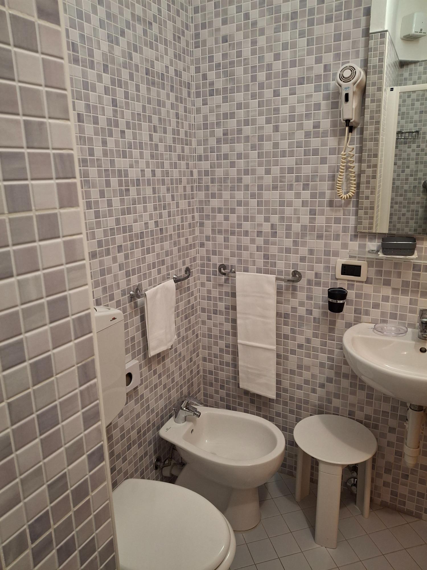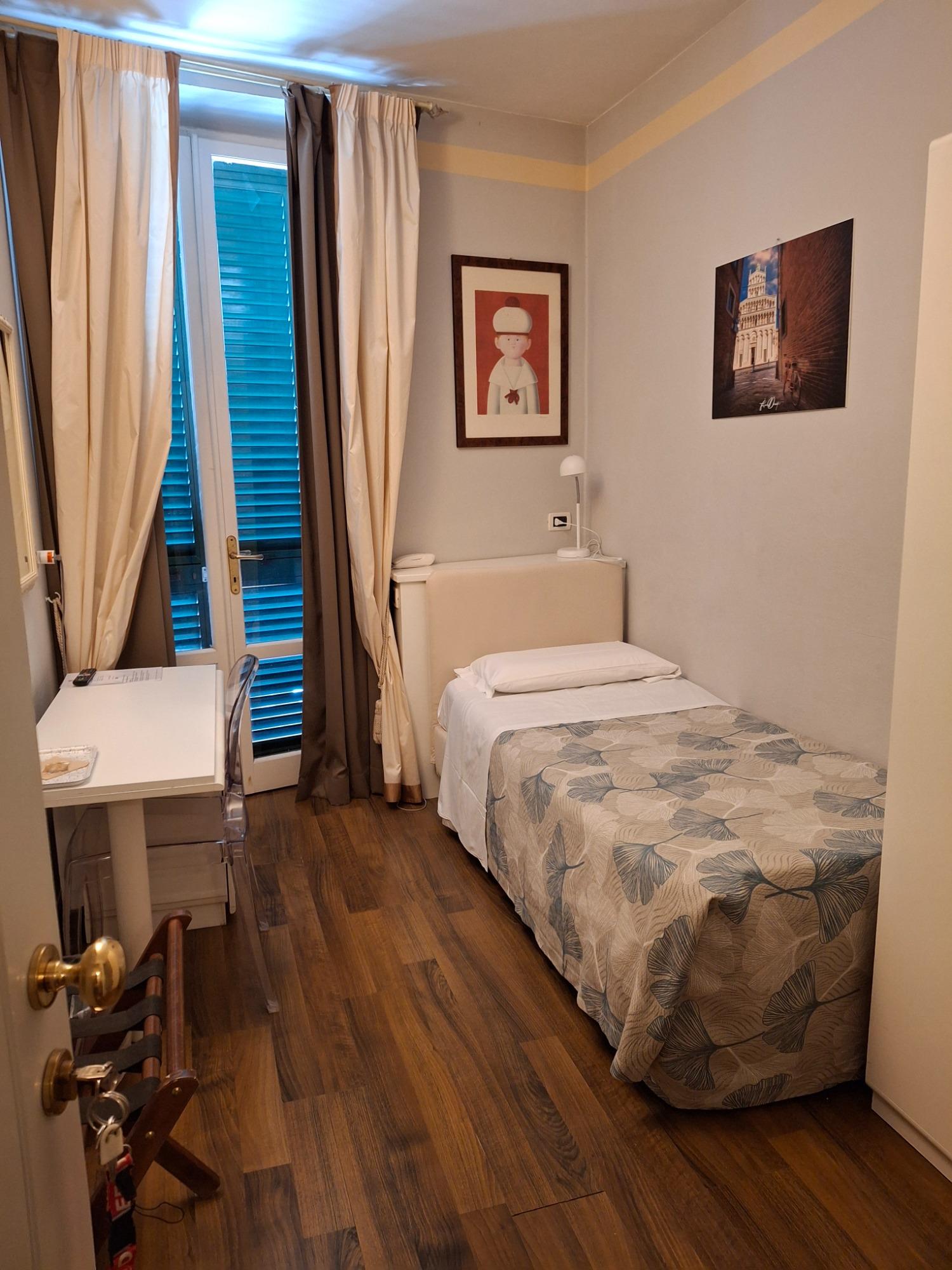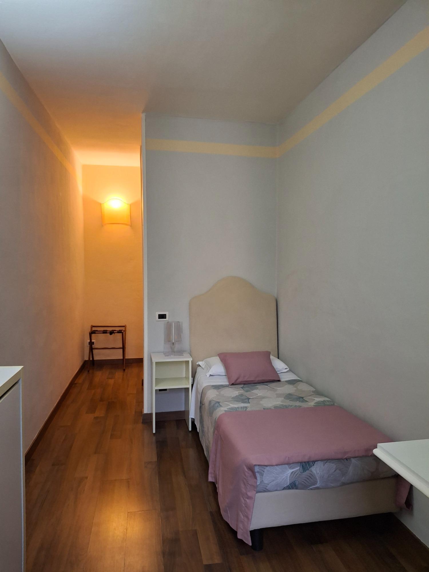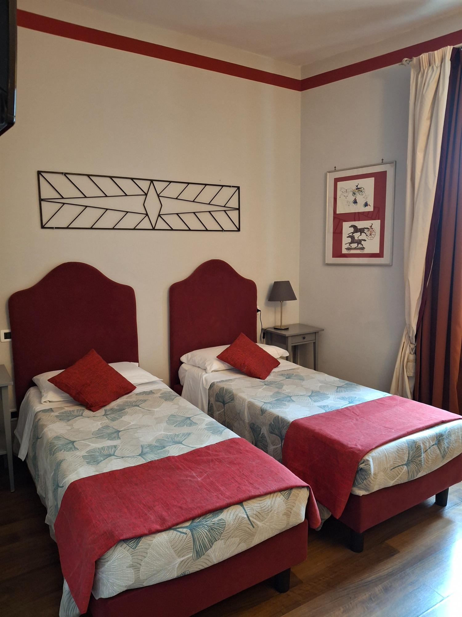 Le camere, disponibili in diverse tipologie (singole, matrimoniali, doppie, triple), sono arredate in modo sobrio e funzionale, con pavimenti in parquet e mobili in legno chiaro che contribuiscono a un ambiente luminoso e curato. Tutte dispongono di aria condizionata, TV a schermo piatto/LCD, scrivania, cassaforte e bagno privato, garantendo comfort e praticità durante l’intero soggiorno.