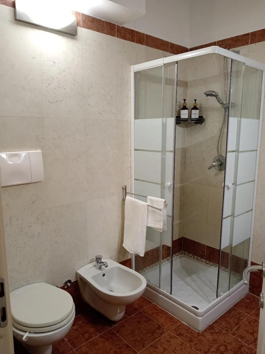 La salle de bain est dotée d'une douche, d'un ensemble de serviettes, d'un kit de courtoisie, d'une machine à laver et d'un sèche-cheveux, assurant aux hôtes tout le nécessaire pour un séjour serein. La chambre comprend une armoire spacieuse et un lit double, avec la possibilité de le transformer en deux lits simples sur demande ; le linge de lit est inclus, ainsi qu'un climatiseur pour un repos optimal. La connexion WiFi gratuite est disponible dans tout l'établissement.