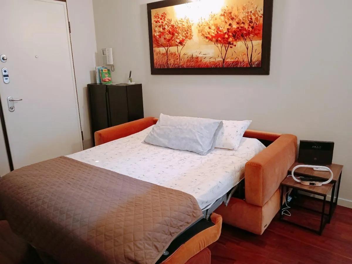 Appartement confortable, aménagé avec simplicité et goût, situé au troisième étage d'un immeuble récent, équipé d'un ascenseur. L'espace s'ouvre sur un salon avec une cuisine équipée de vaisselle, micro-ondes, machine à café, télévision intelligente et réfrigérateur. Un canapé-lit avec un matelas en mousse à mémoire (de taille française) et un climatiseur complètent la zone de vie, offrant confort et praticité.