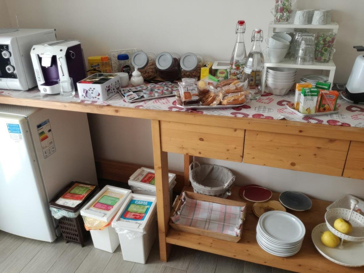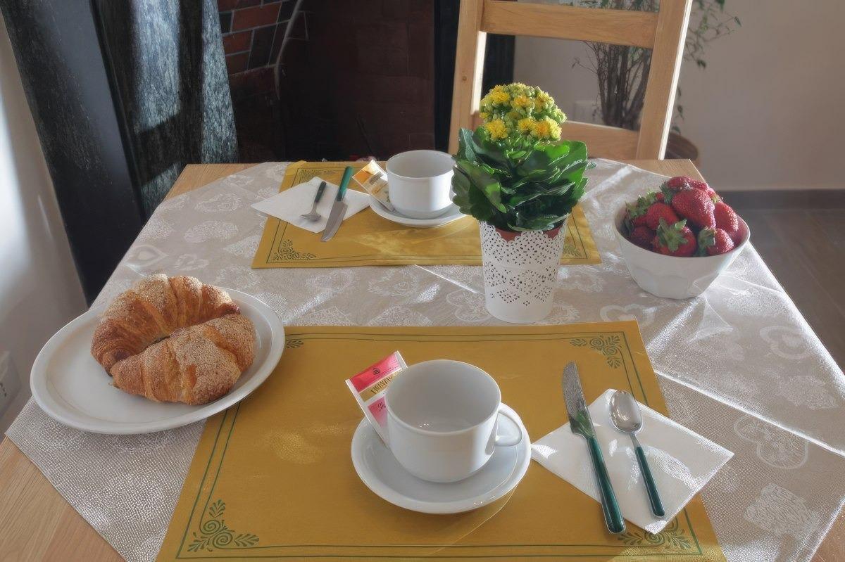 La vostra deliziosa colazione è inclusa nel vostro soggiorno presso il incantevole Bed and Breakfast all'Angolo Giusto. Potrete godervela senza restrizioni di orario nella nostra accogliente sala da pranzo, che è sempre fornita di tutto ciò di cui avete bisogno. Troverete una macchina per il caffè con cialde per gustare un perfetto espresso, un forno a microonde per scaldare le vostre prelibatezze, un tostapane per croccanti toast, cereali, biscotti, dolci brioches, fette biscottate, miele, marmellata, nutella, un frigorifero con latte e yogurt freschi, e persino un bollitore per preparare tè e tisane in qualsiasi momento della giornata.