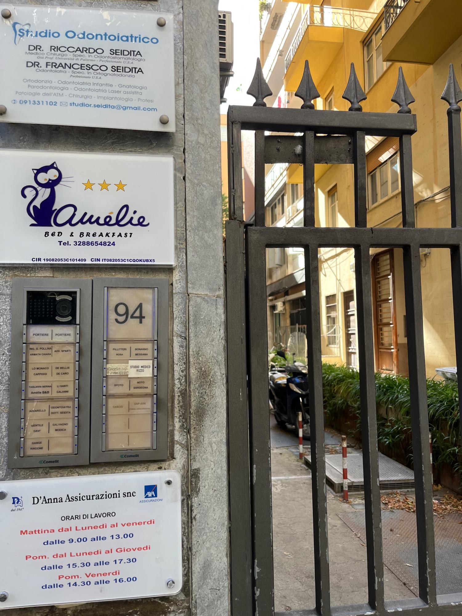 Das B&B Amélie liegt im pulsierenden Herzen der Stadt, nur wenige Schritte vom Teatro Politeama entfernt, dem Schnittpunkt zwischen dem antiken Palermo und dem eleganten Liberty-Stil des frühen 20. Jahrhunderts. Es wird von der wunderschönen Via Principe di Belmonte, dem "Salon von Palermo", umrahmt. Das B&B verfügt über Doppel-, Zweibett- und ein Dreibettzimmer. Seit 2012 wird das B&B Amélie im "Lonely Planet" Reiseführer empfohlen.