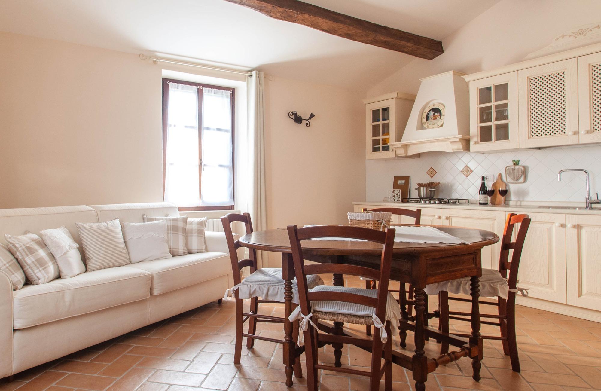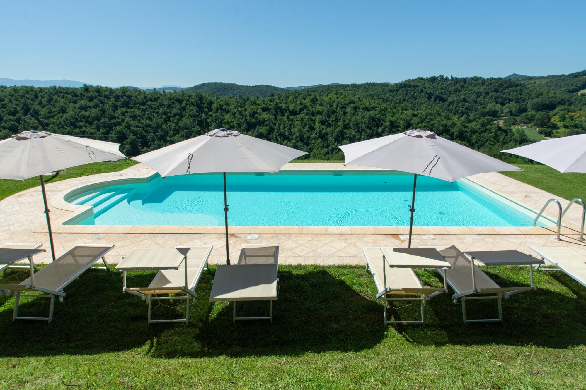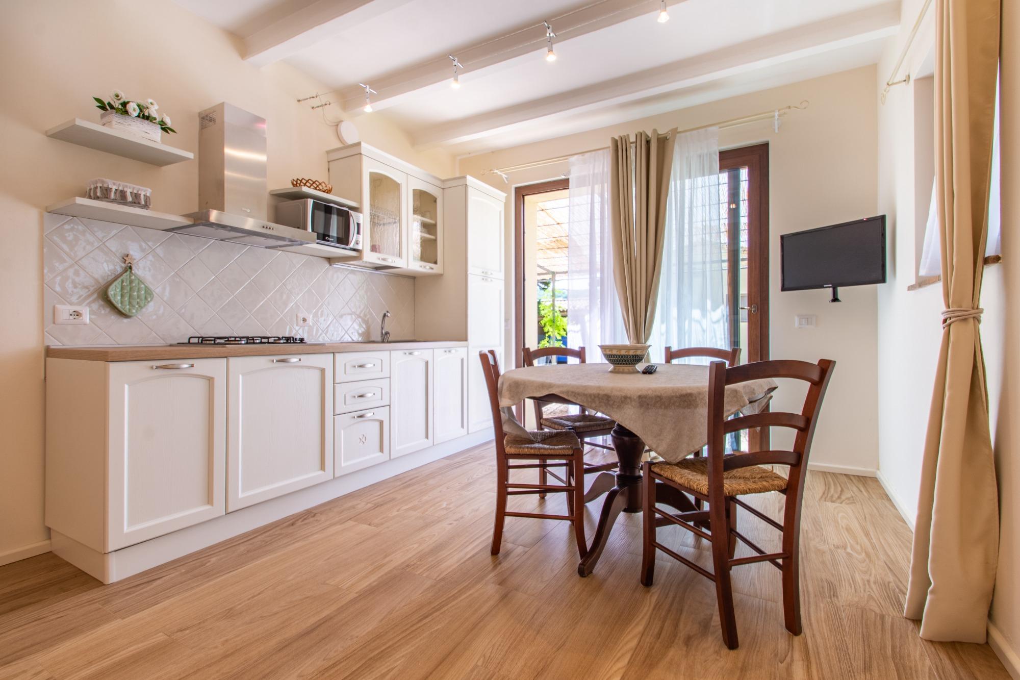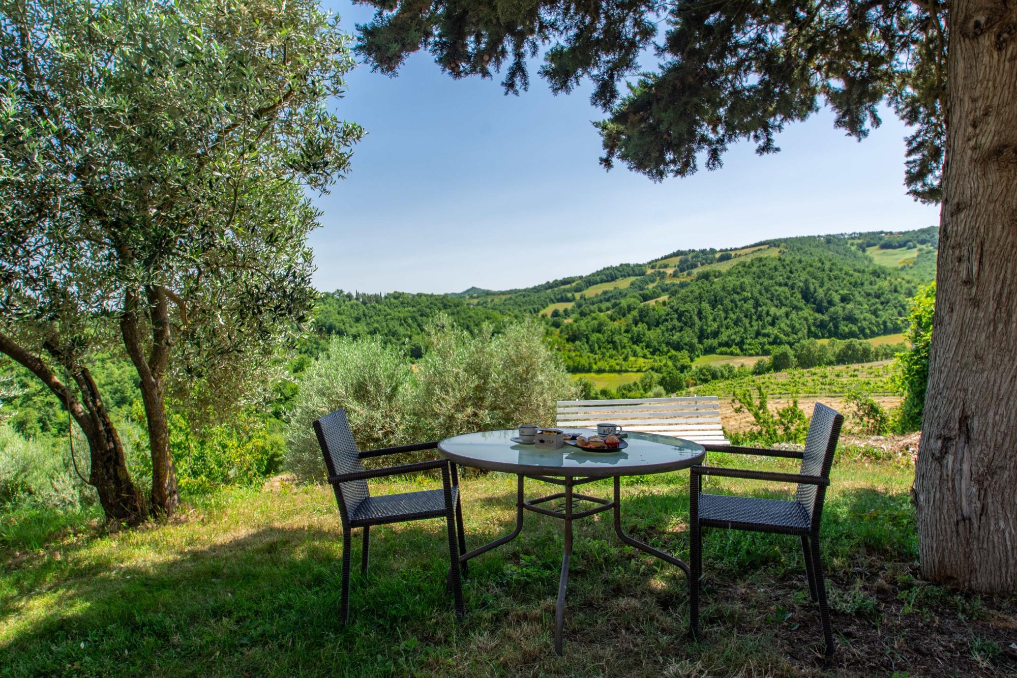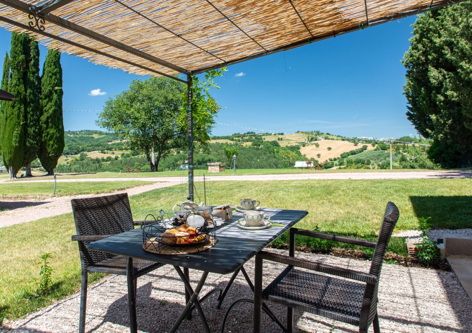 Each accommodation, furnished in a country style with bright and light colors, provides fresh and relaxing spaces, as well as an exclusive outdoor area with a table and chairs in the park. Guests can also enjoy a sunny panoramic pool surrounded by hills, with reserved sun loungers for each apartment. For those who wish to start the day deliciously, a sweet or savory breakfast can be requested, served outdoors with homemade products.