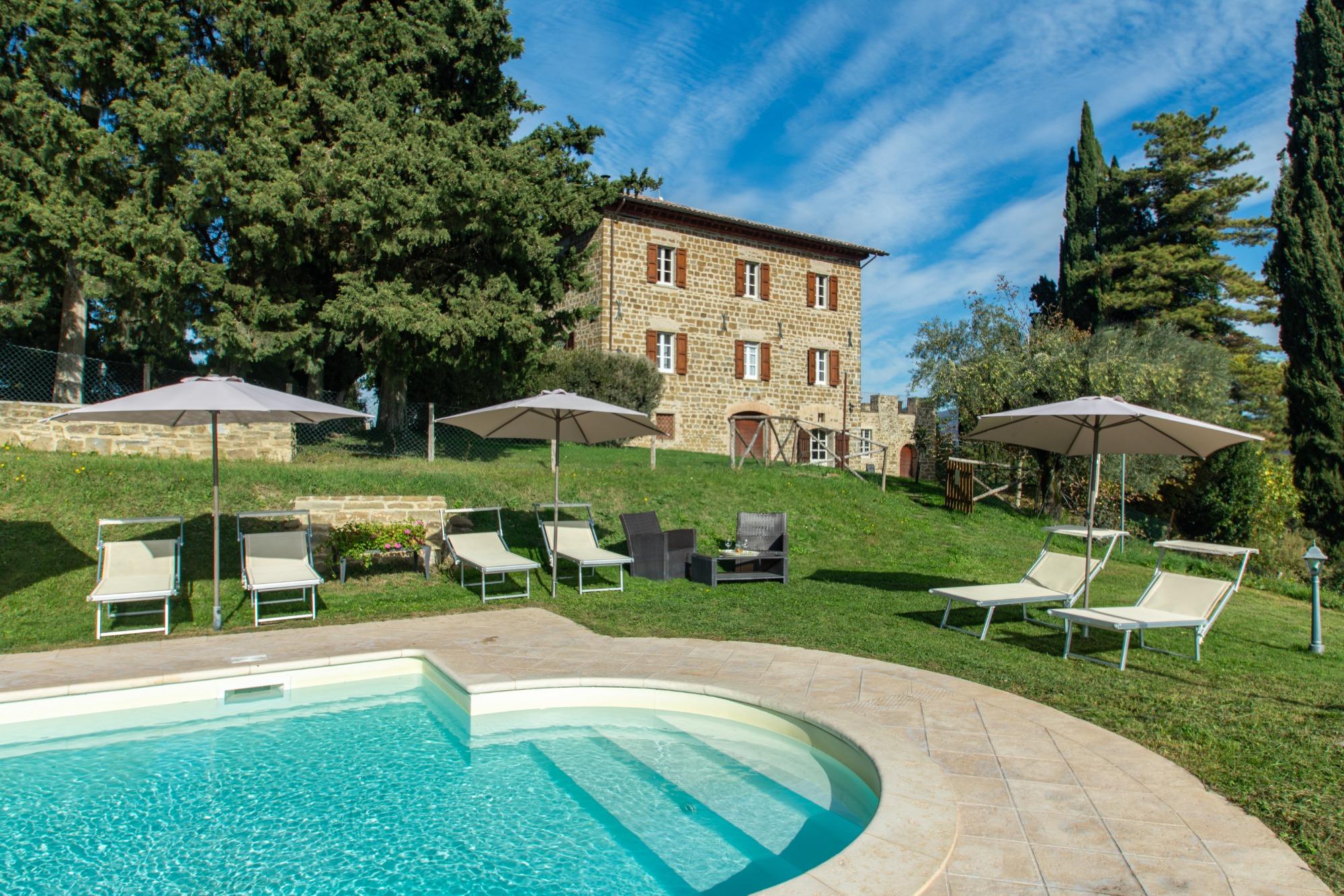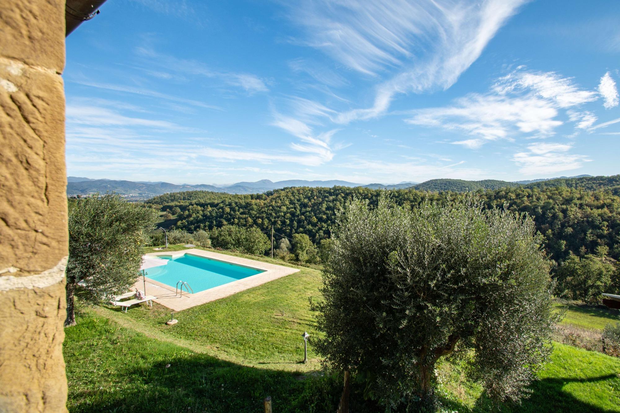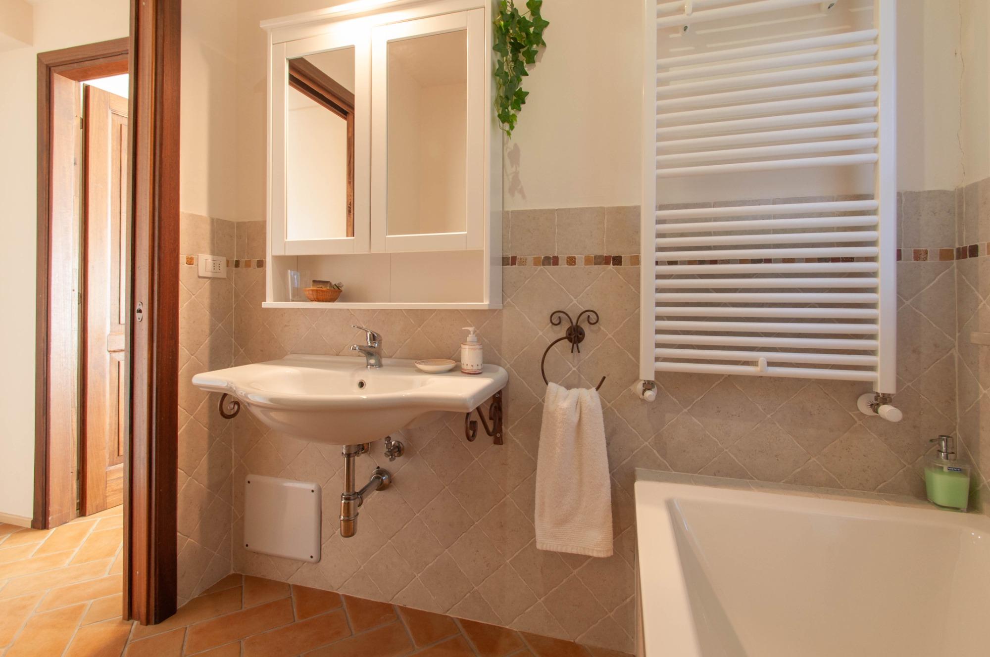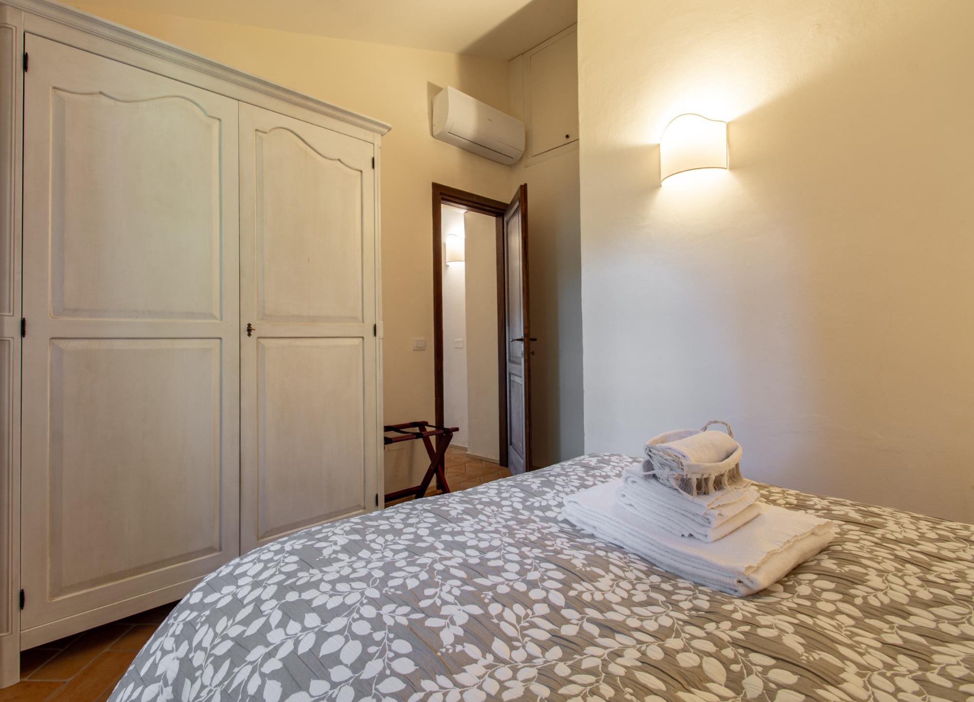 Grazioso bilocale al primo piano, si affaccia sul giardino con vista piscina e colline circostanti offre agli ospiti un soggiorno con ampio camino antico, angolo cottura attrezzato.