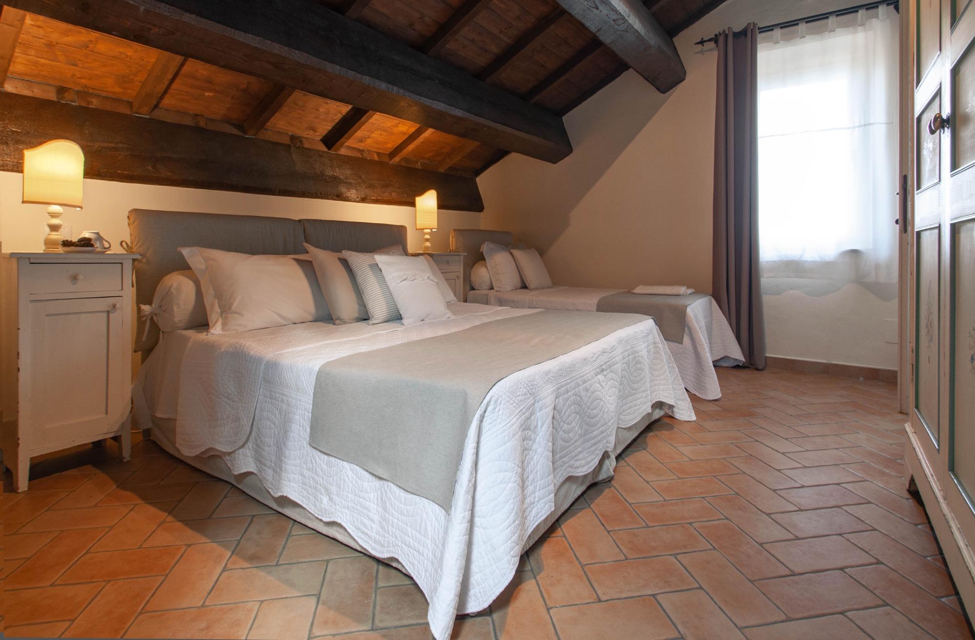 Camera tripla mansardata al secondo piano, con bellissima vista panoramica di fronte a Gubbio.