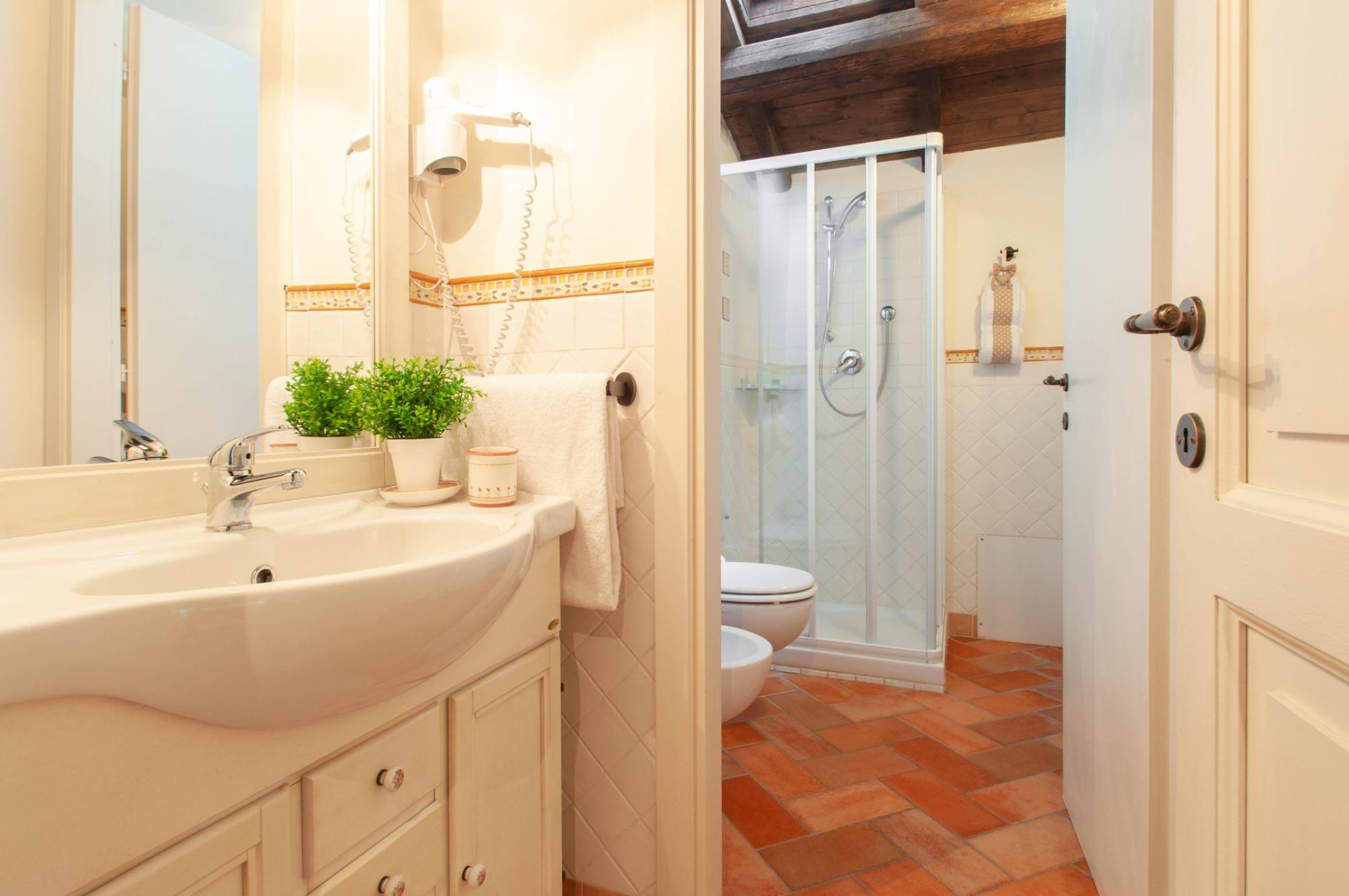 Spaziosissimo e romantico monolocale–suite (open space) al primo piano, è ideale per le coppie, offre agli ospiti un comodo letto matrimoniale + letti aggiunti e un bagno con doccia.