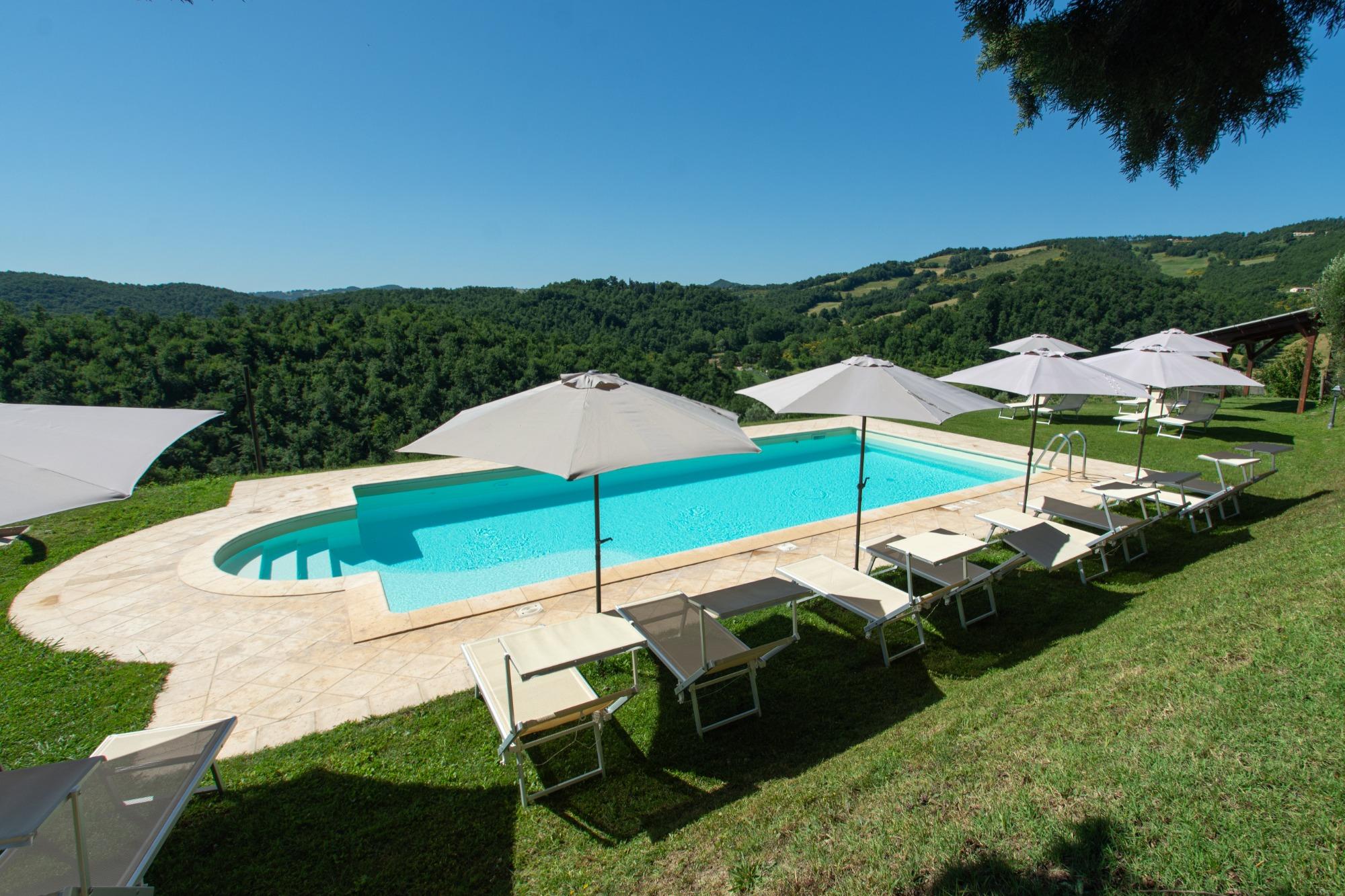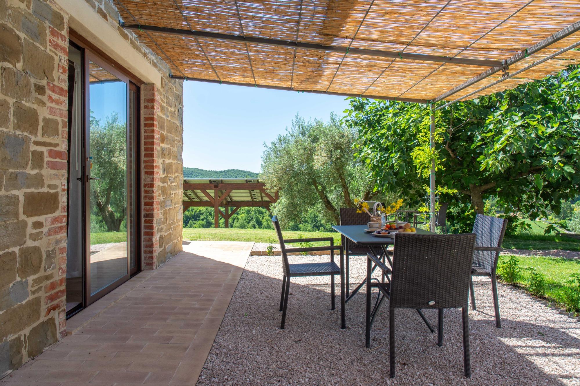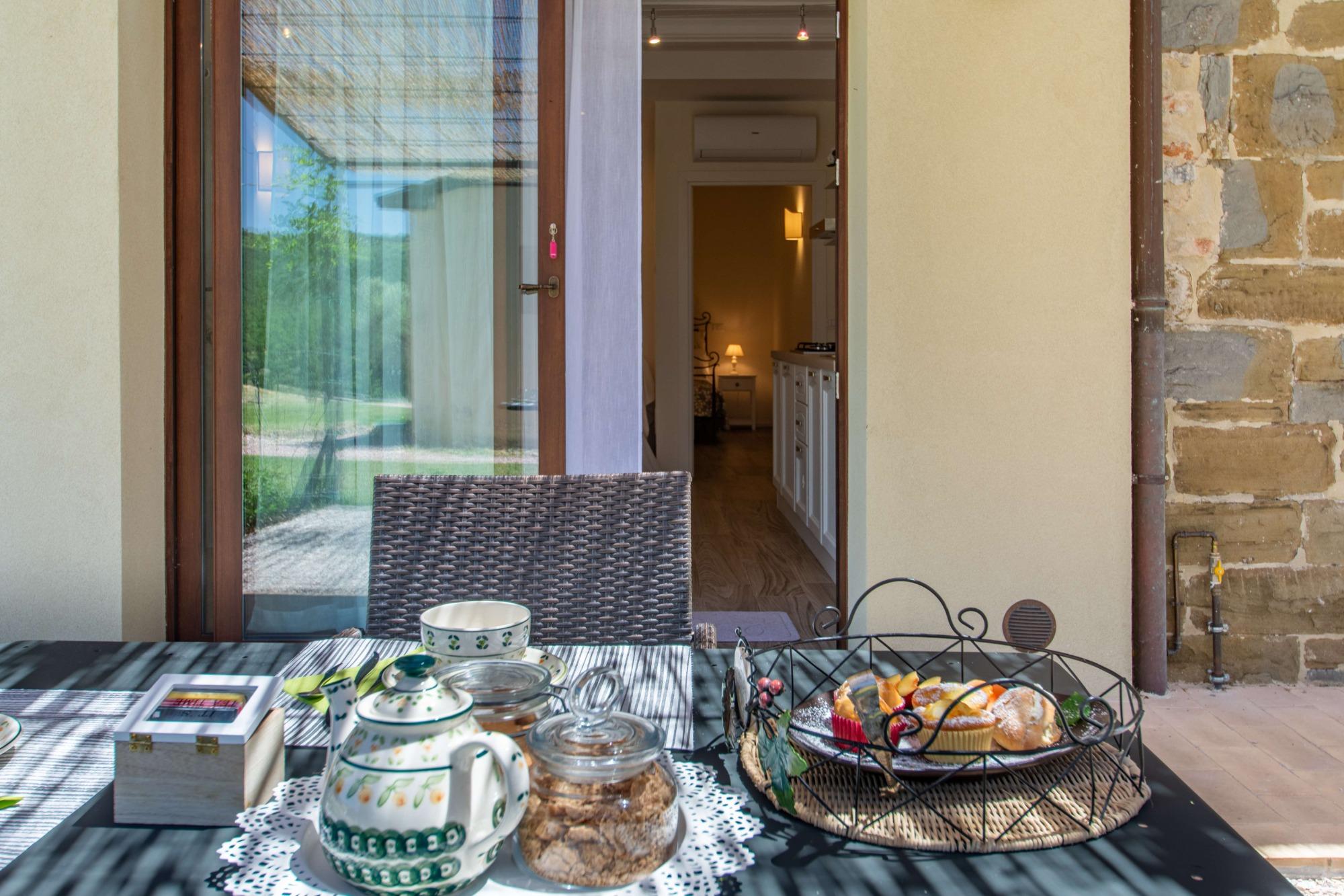 Ogni alloggio, arredato in stile country con colori chiari e luminosi, offre ambienti freschi e rilassanti, oltre a uno spazio esterno esclusivo con tavolo e sedie nel parco. A disposizione degli ospiti anche una piscina panoramica soleggiata, circondata dalle colline, con lettini riservati per ciascun appartamento. Per chi desidera iniziare la giornata con gusto, è possibile richiedere una colazione dolce o salata, servita all’aperto con prodotti fatti in casa.