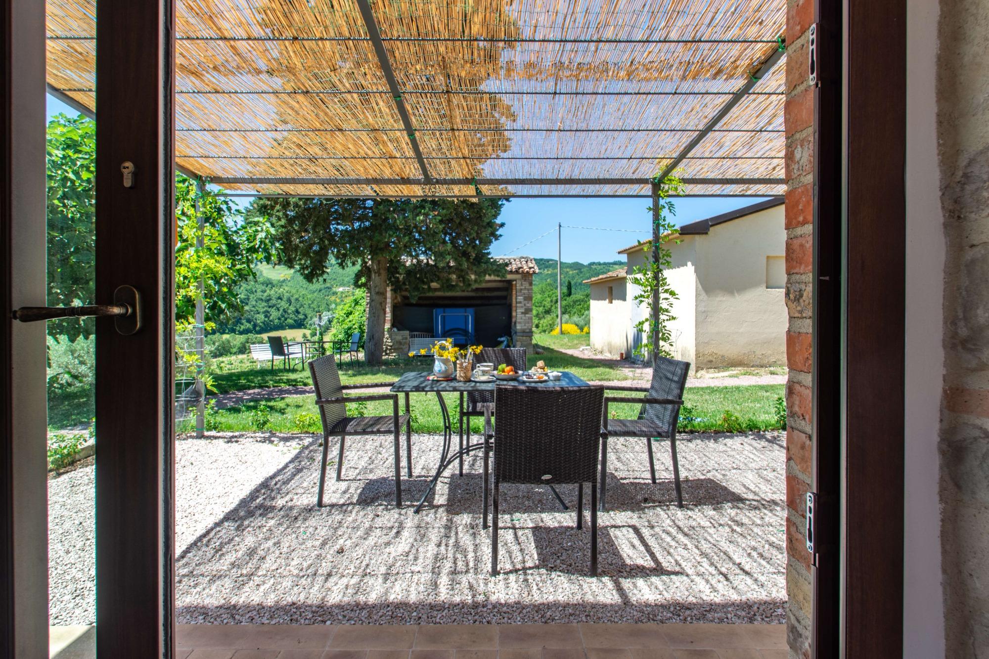 A fianco della finestra con vista c'è un terrazzo fresco e ombreggiato, arredato con tavolo e sedie, che gode di un panorama meraviglioso di fronte a Gubbio. Minimum stay 2