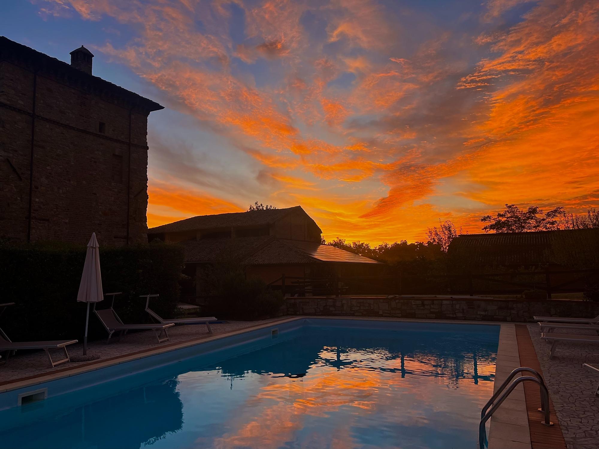 The Antica Torre organic farmhouse is a small medieval village historically connected to several castles in Parma and Piacenza. Located on green hills, immersed in nature and absolute tranquility, it overlooks the city of Salsomaggiore Terme and the entire valley of taste and flavor, nestled between Tuscany and Lombardy, just an hour away from the Ligurian sea. Visiting these places means immersing yourself in a historical culture made up of art and typical products such as Culatello, Prosciutto di Parma, Parmigiano Reggiano, and many others. Products that represent the pride of the prestigious Emilia Romagna food tradition, accompanied by the incomparable operatic works of Maestro Giuseppe Verdi.