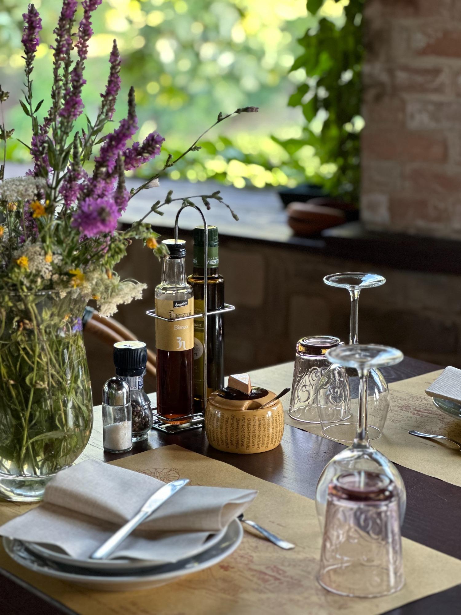 The service is offered in a family atmosphere, in the dining room, which was once the old stable of the complex. Thanks to the large tables and typical cuisine, a welcoming and friendly atmosphere is created that encourages meeting new people. Additionally, for special evenings, you can taste the best local specialties with a tasting dinner in the Cistercian Grangia cellar. Here, the charm of the past blends with intense flavors and aromas of the present.