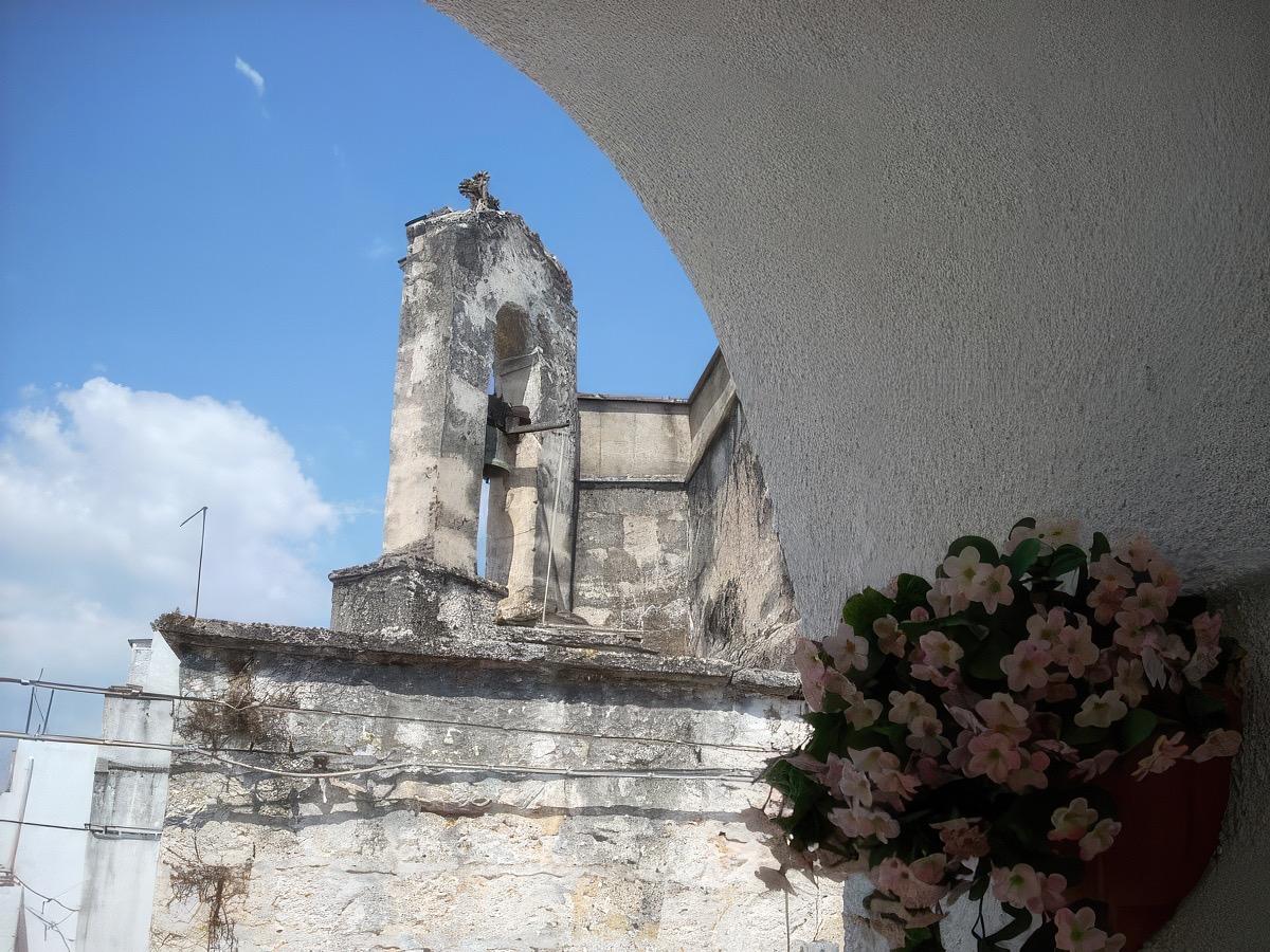 camera matrimoniale piu' letto a castello con volta in pietra e balconcino con vista sulla chiesa di Sant'Angelo; la camera dispone di bagno interno, tv schermo piatto e aria condizionata