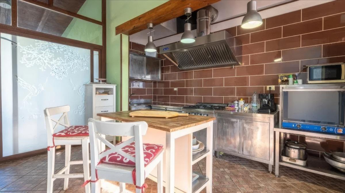 The house boasts a large and modern kitchen that overlooks the veranda in front of the pool. It is ideal for families with children as it is well-fenced and surrounded by greenery. Access to the pool is also allowed for guests of a second property within the same complex, with a maximum capacity of 4 people.