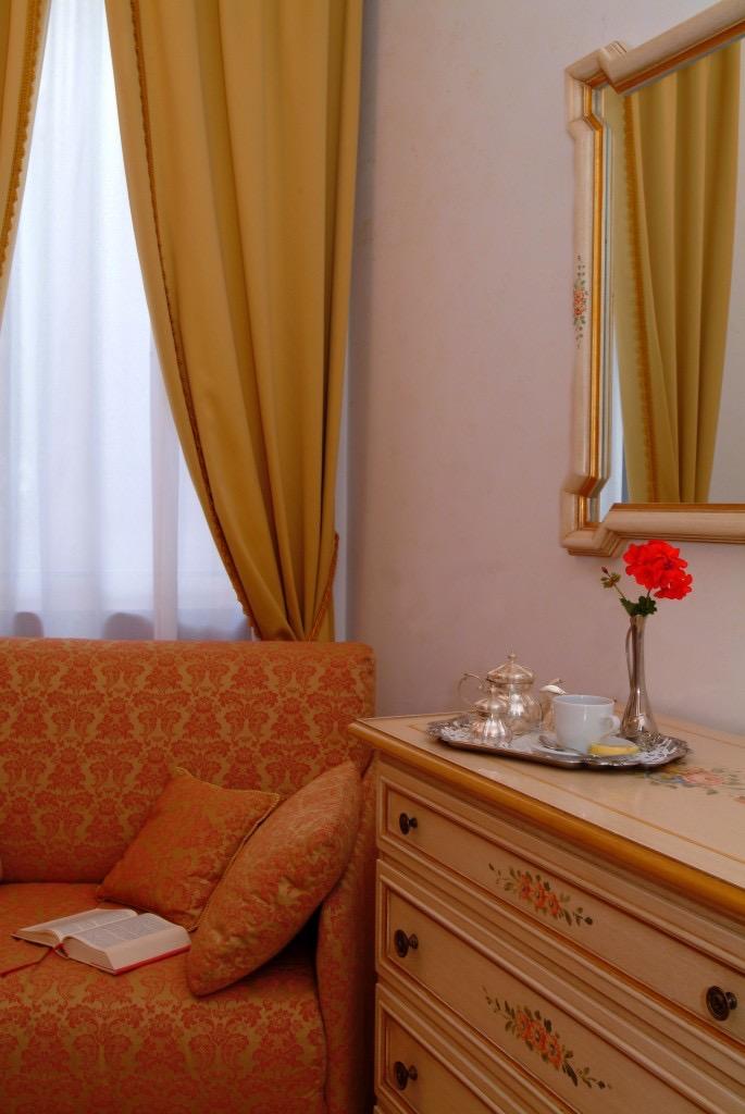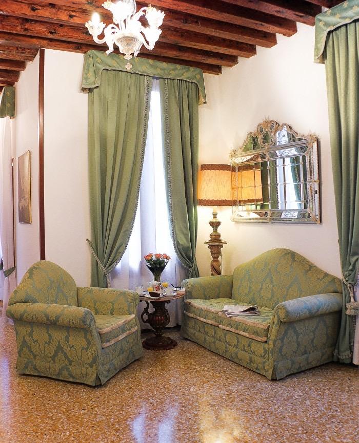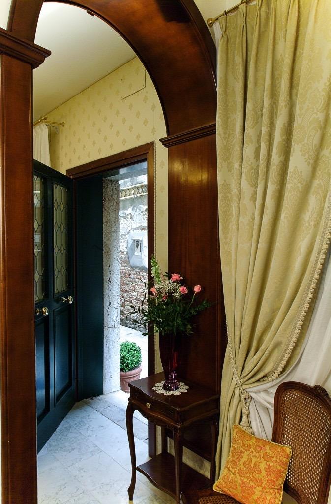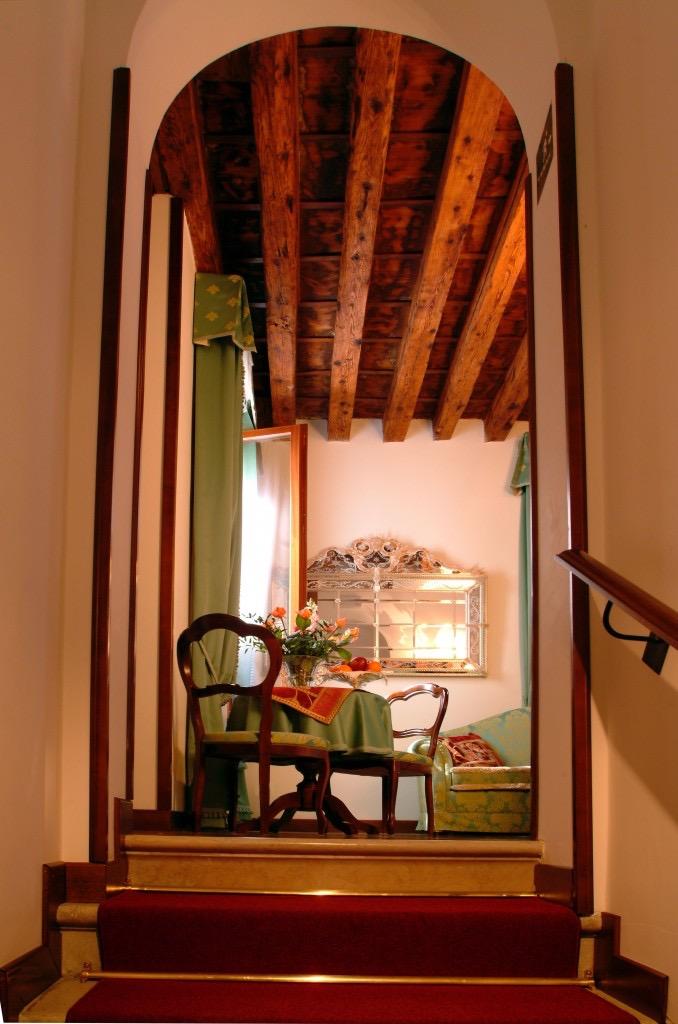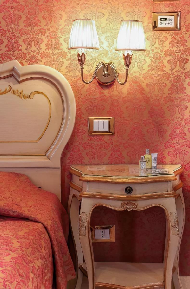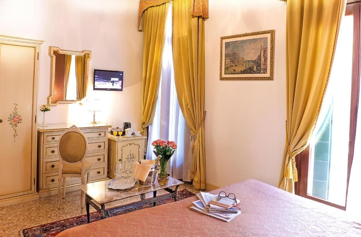 Todas las habitaciones están equipadas con TV-LED satelital, aire acondicionado con termostato, teléfono directo, conexión a internet WI-FI, caja fuerte, minibar, tetera con selección de té y café gratis, baño privado en mosaico con bañera y ducha y secador de pelo. El mobiliario, cuidado en los detalles, con muebles de estilo, telas preciosas, lámparas de vidrio de Murano, pisos de mosaico veneciano y las obras de algunos de los artesanos más importantes de la ciudad crean la atmósfera mágica de una antigua Venecia.