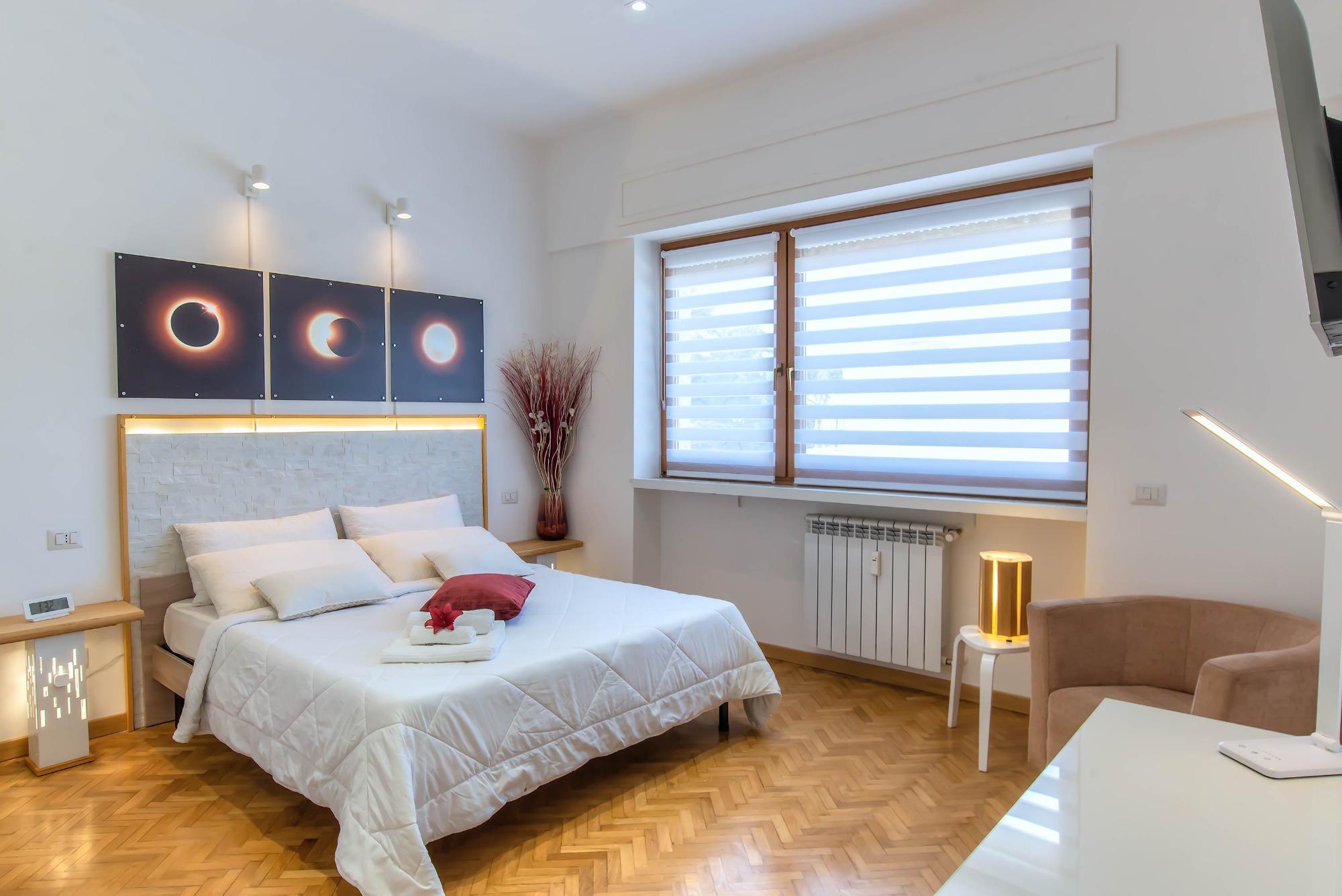 L’Appartamento Luna è una soluzione ad uso esclusivo di 38 metri quadrati, situata al terzo piano di uno stabile condominiale dotato di ascensore. Pensato per ospitare fino a due persone, dispone di una zona notte con letto matrimoniale, una zona pranzo con cucina a vista completamente attrezzata, un bagno con doccia e un terrazzo che completa lo spazio abitativo, rendendolo funzionale e piacevole per soggiorni brevi o medi.