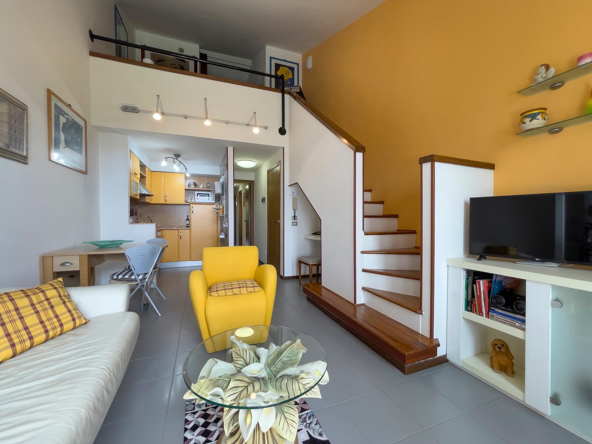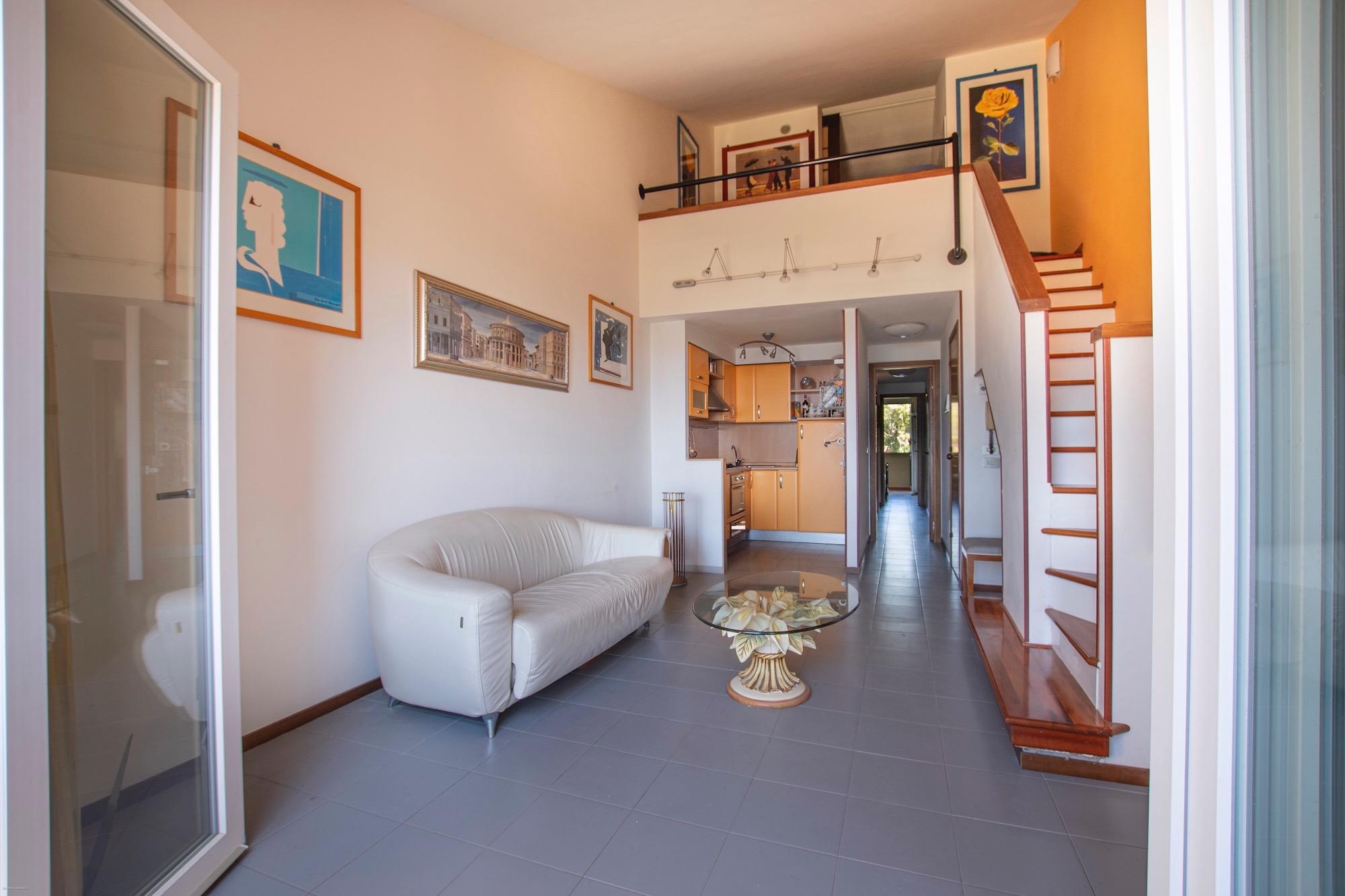 Le salon, accueillant et soigné dans les moindres détails, s'ouvre sur deux terrasses : l'une avec vue sur le port et l'autre donnant sur un parc verdoyant, idéales pour se détendre à l'extérieur à tout moment de la journée. La cuisine est entièrement équipée et les espaces sont climatisés grâce à un climatiseur portable et à des ventilateurs. Parmi les services inclus, on trouve un garage privé avec place de stationnement, un local à vélos et une connexion Wi-Fi collective.