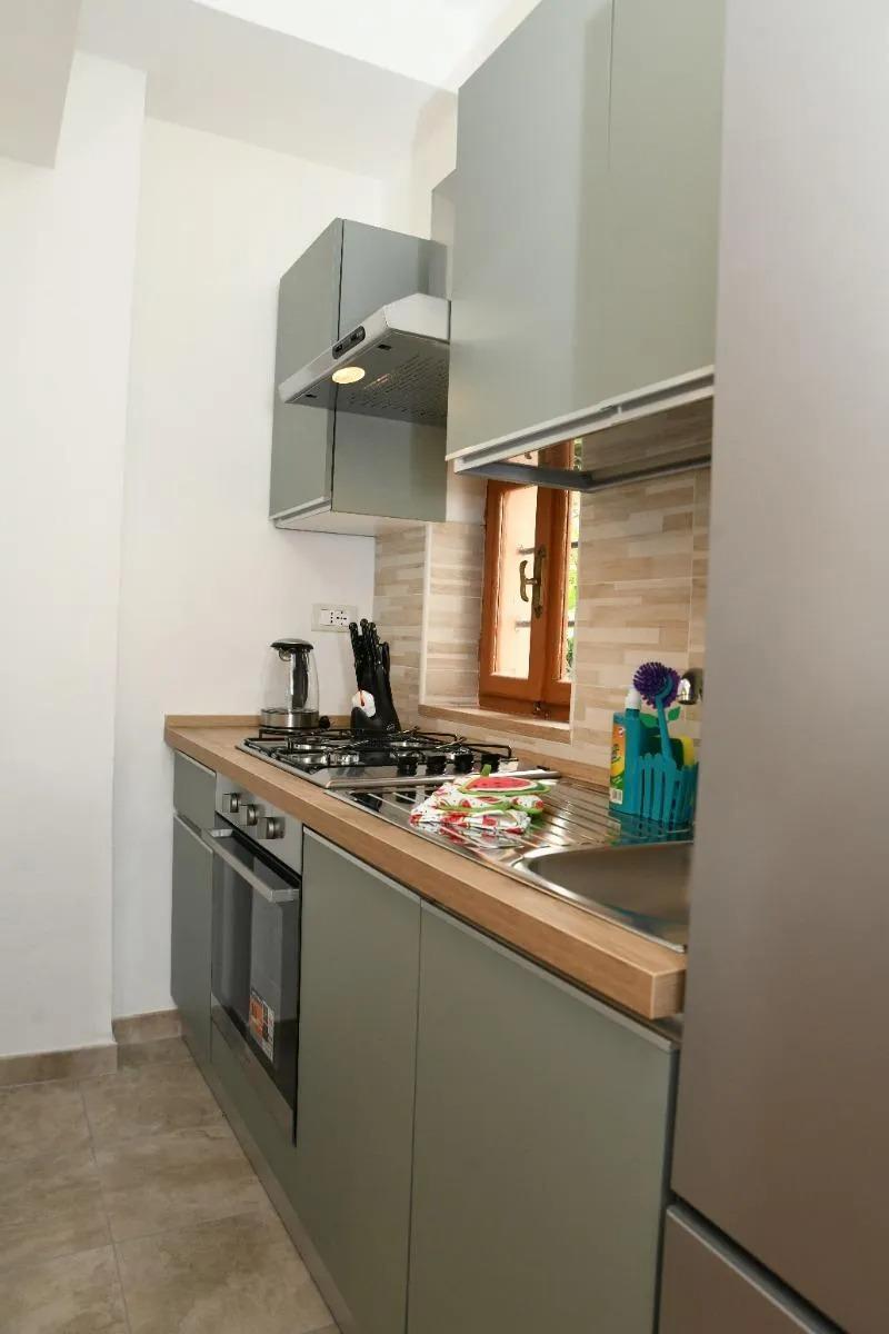 L’appartamento, distribuito su due piani, offre al piano terra un ampio e luminoso salotto con camino, divano letto e smart TV, e una cucina completamente attrezzata con forno, bollitore, microonde e un'ampia scelta di pentole e utensili da cucina. Al primo piano si trova una camera matrimoniale con letto king size, uno studio con letto singolo e scrivania, e un bagno con doccia. L’aria condizionata è presente nelle camere, mentre al piano terra è disponibile un ventilatore.