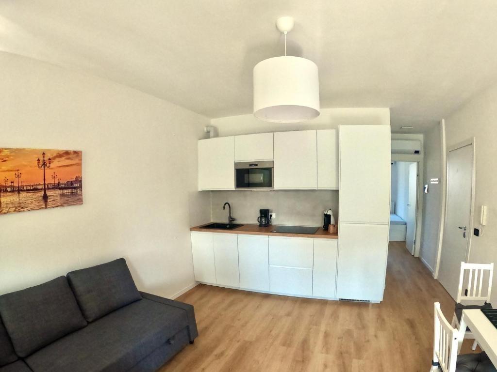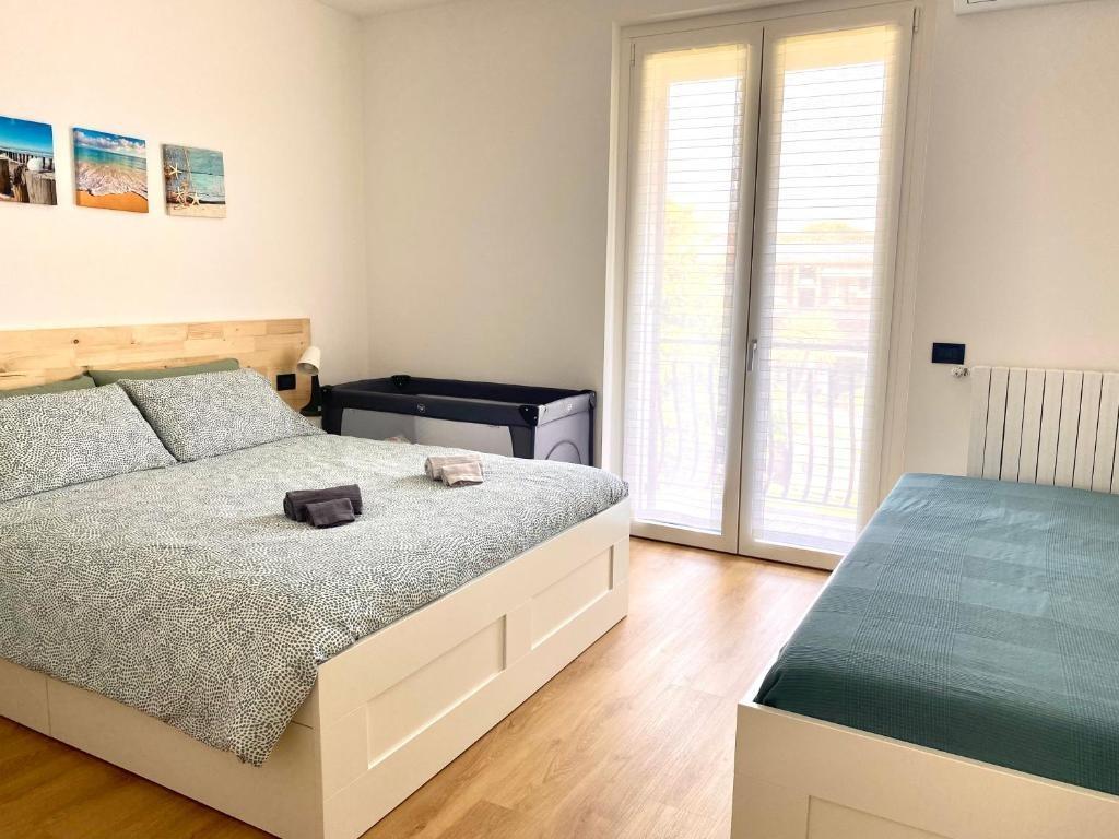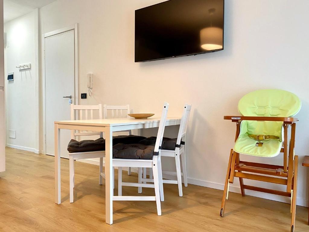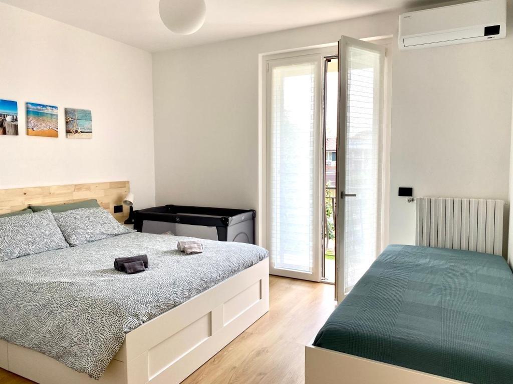 The recently renovated apartment is a one-bedroom unit located on the first floor, featuring two balconies that bring light and airiness to the space. The interiors are well-maintained and functional: the kitchenette is equipped with a dishwasher, microwave, and coffee machines for both American and espresso coffee, while the living area includes a comfortable double sofa bed. The bedroom can accommodate up to three people, making it particularly suitable for couples or small families. Amenities include free Wi-Fi, air conditioning, a large Smart TV, a covered parking space, and sun loungers with pool towels. Bed linens, towels, and a hairdryer are also provided.