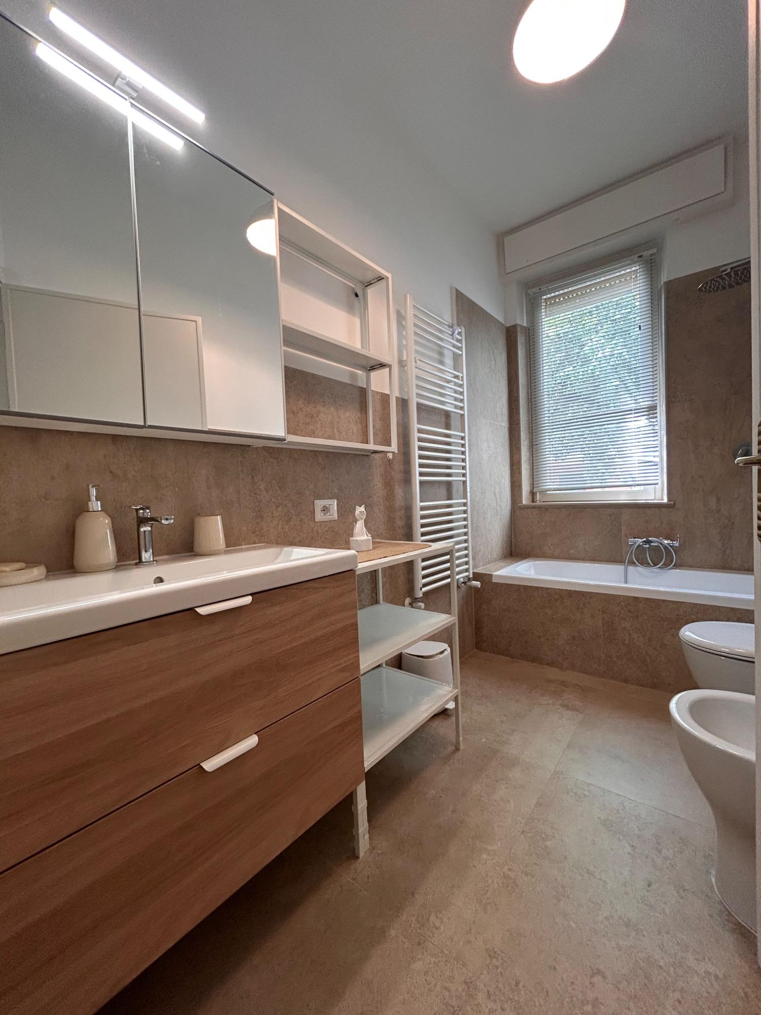 Soggiorno, cucina, zona studio, 2 balconi e giardino privato.
