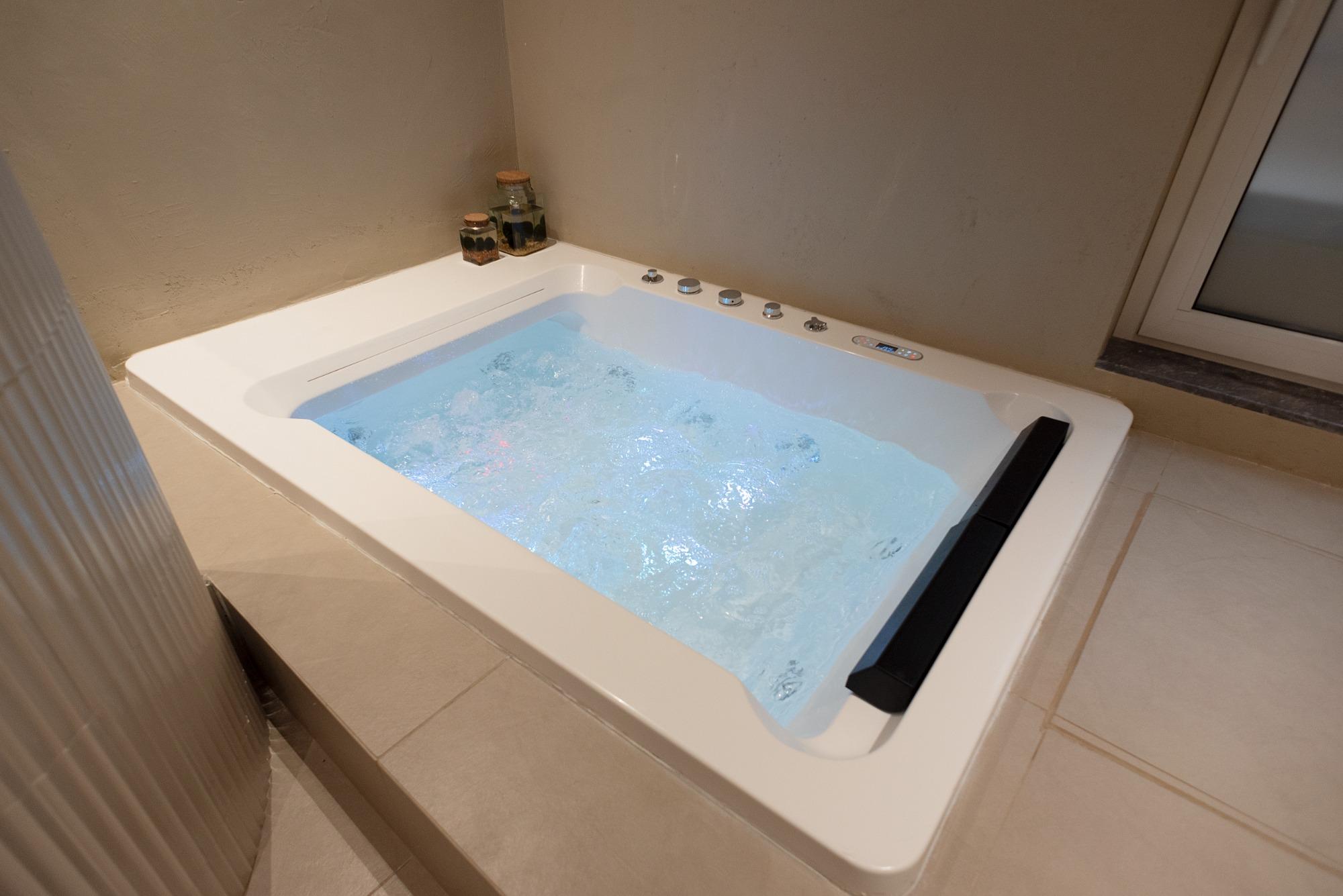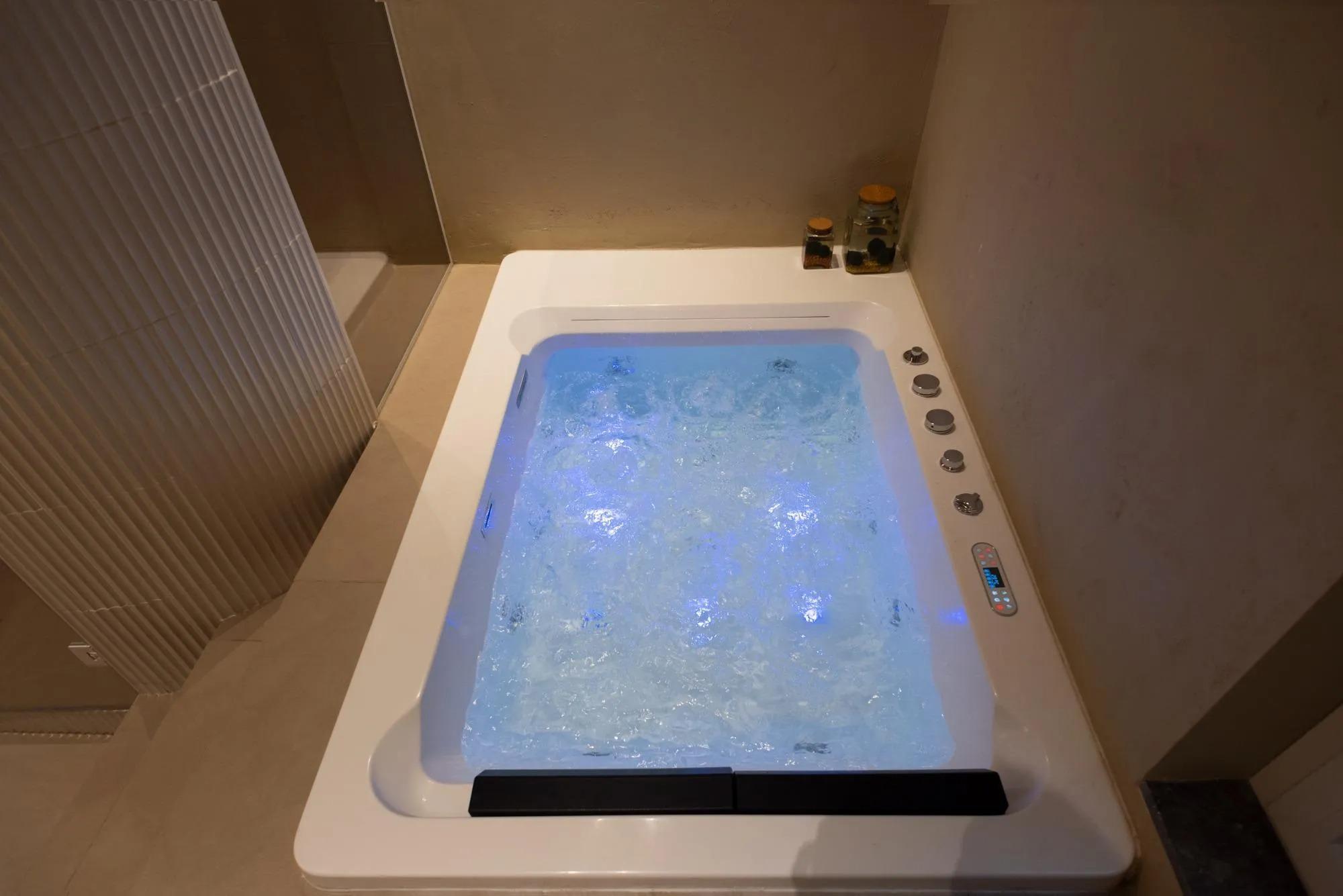 L'atmosphère, soigneusement aménagée, offre une ambiance intime et chaleureuse. Le lit à baldaquin avec des oreillers en mousse à mémoire de forme garantit un sommeil réparateur, tandis que le coin cuisine dissimulé allie fonctionnalité et esthétique. Le véritable atout est la spa privée avec une grande baignoire à remous et une cascade, conçue pour une expérience de bien-être inégalée.