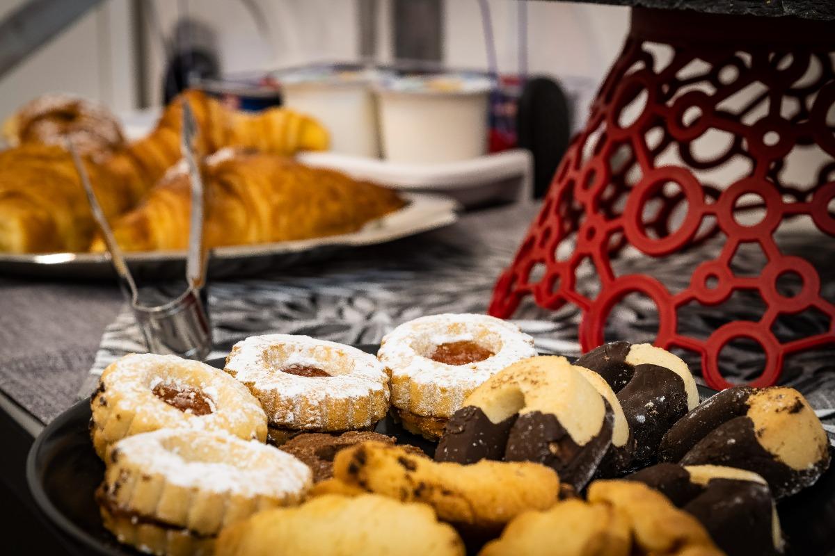 We would be delighted to offer you a delightful continental breakfast, featuring tarts, large cakes, brioches, cookies, yogurt, fruit juices, orange juice, coffee, cappuccino, tea, and much more.