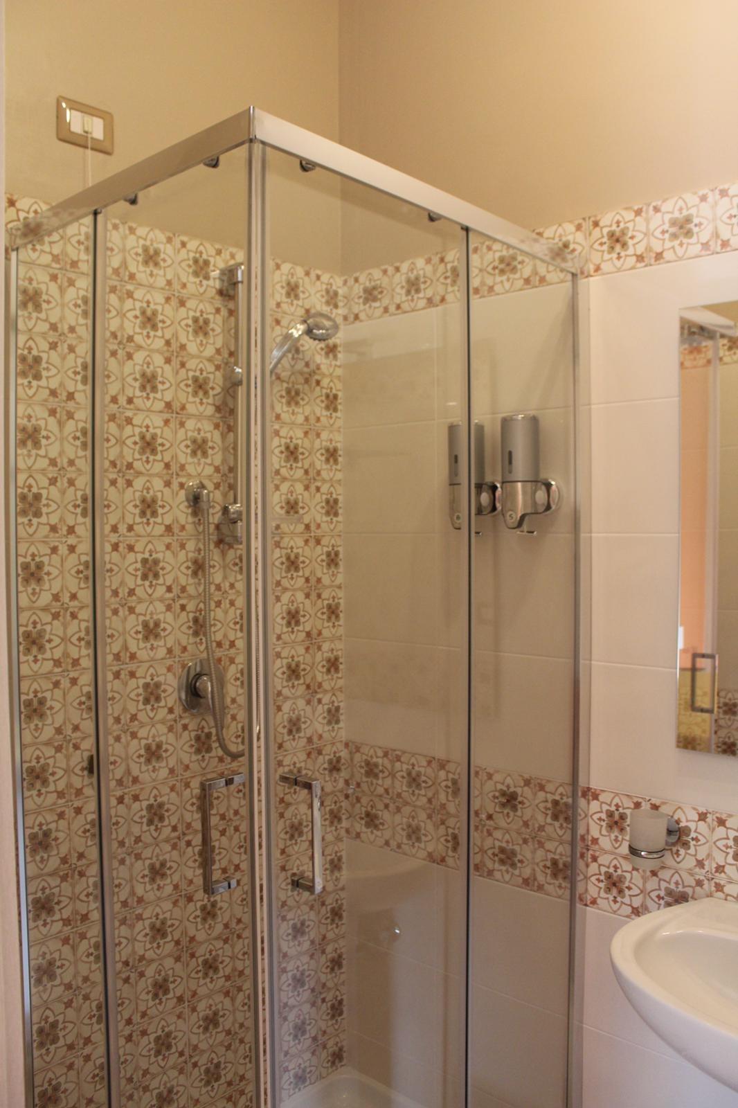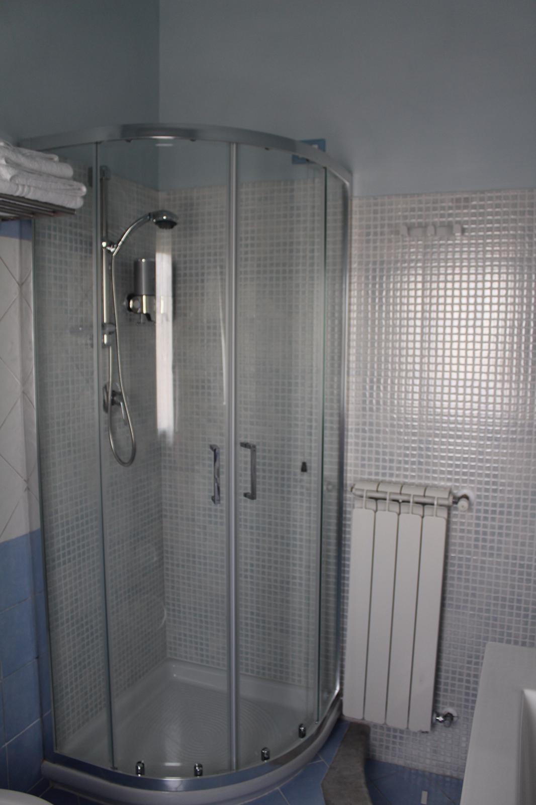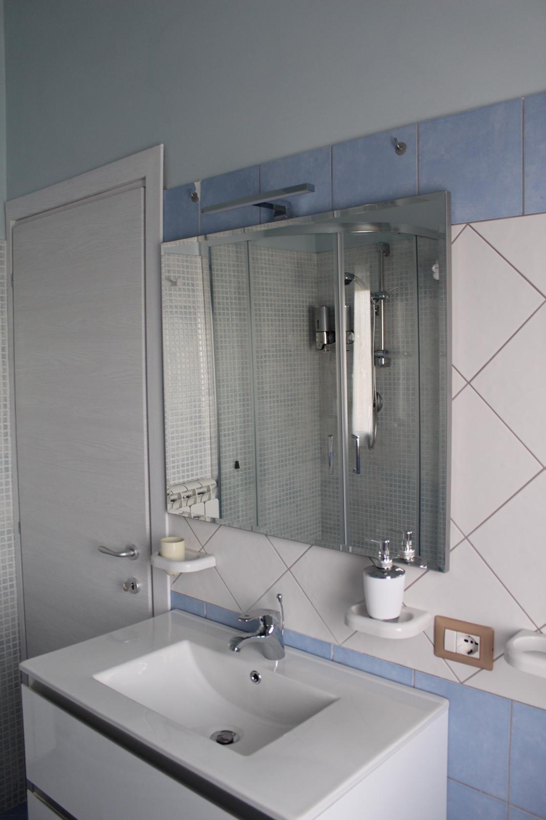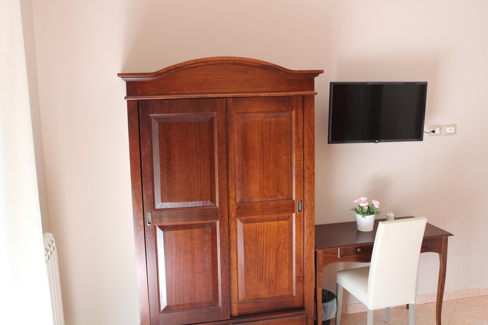Double room with the possibility of a third bed, sea view, spacious and bright, equipped with a 32-inch TV, desk, wardrobe, air conditioning, heating, and balcony. The private bathroom inside the room is very spacious, equipped with a shower, bidet, hairdryer, and toiletries.