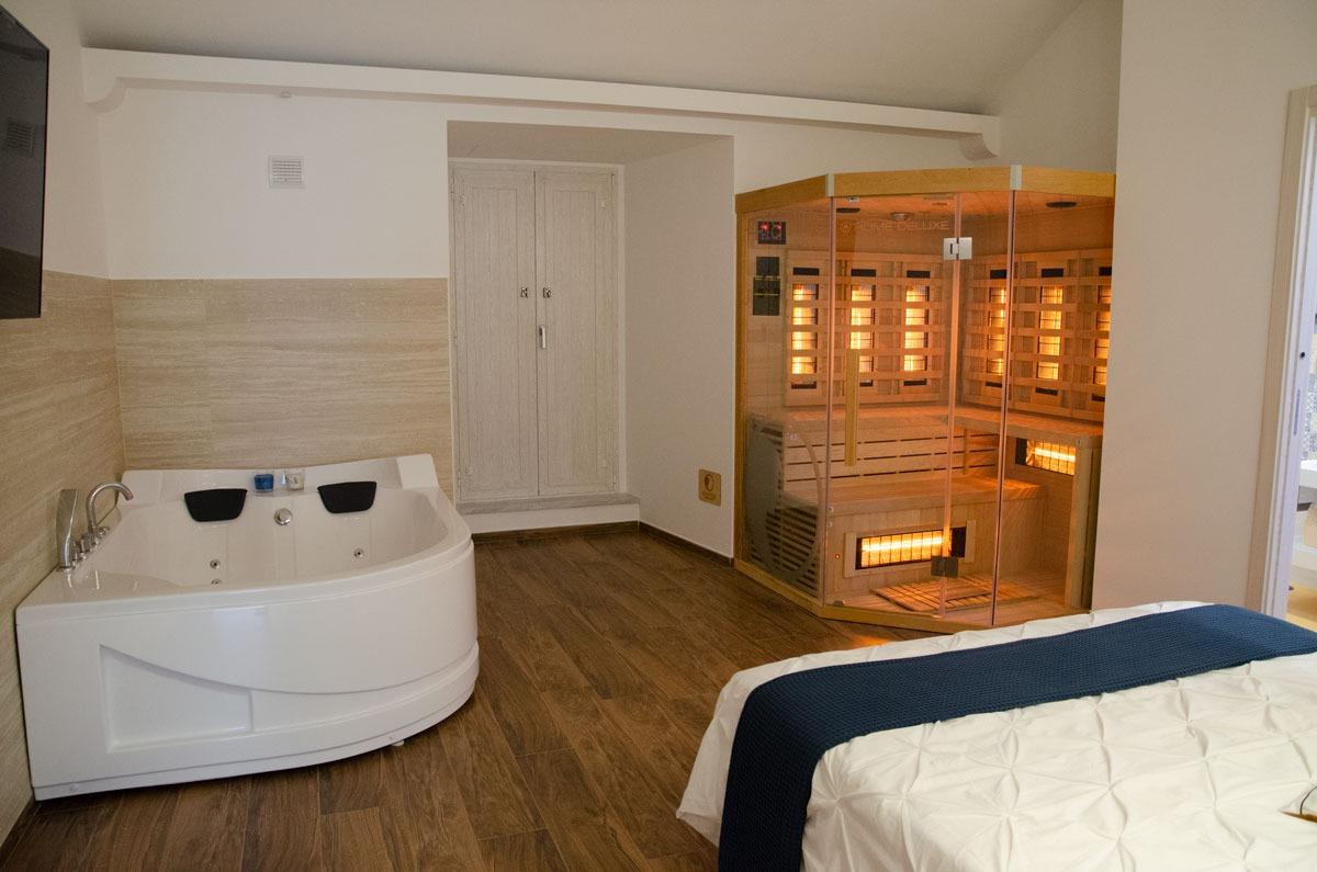 La suite, un mini-appartamento completamente autonomo e dotato di cucina, offre ogni tipo di comfort. La vera perla della struttura è la SPA privata ed esclusiva per due persone, con Sauna Finlandese e Vasca Idromassaggio all’interno della spaziosa e luminosa camera da letto con letto “Large”. Completano l’esperienza di benessere un Bagno Turco Multifunzione con Doccia Emozionale, Cromoterapia, Ozonoterapia, Aromaterapia, Doccia Idromassaggio e doccia tradizionale, creando un’atmosfera di totale relax.