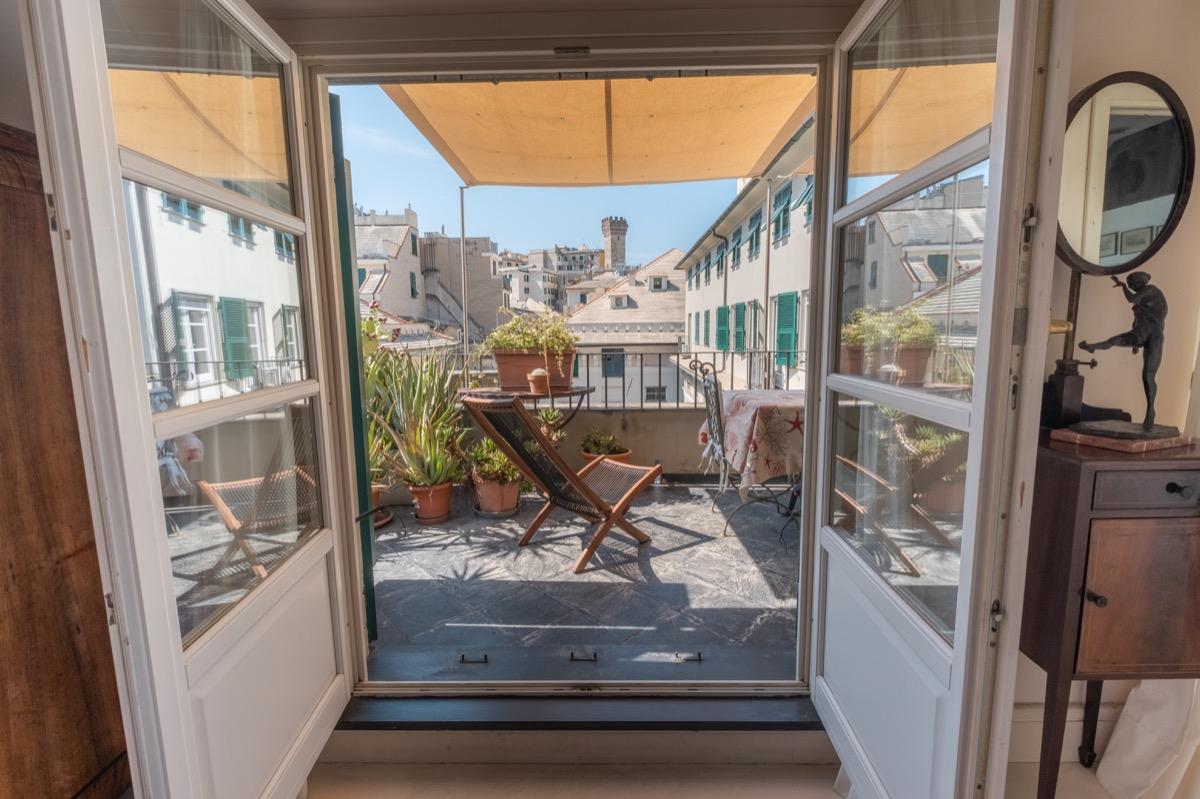 Attico Palazzo Giustiniani is located in one of the historical 17th century Palazzi (Palazzo dei Rolli) in the center of Genoa. It has an elevator that goes directly to the floor. We offer only one double room with a private bathroom inside. This accommodation is perfect for couples who want to spend a romantic holiday in total tranquility, without any other guests present. The only person present will be the manager. The bedroom opens onto a beautiful terrace where you can have breakfast in the morning, when weather permits, or enjoy an aperitif while admiring the roofs of Genoa in the distance. WiFi is free, and heating and air conditioning are also available.