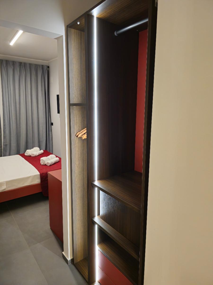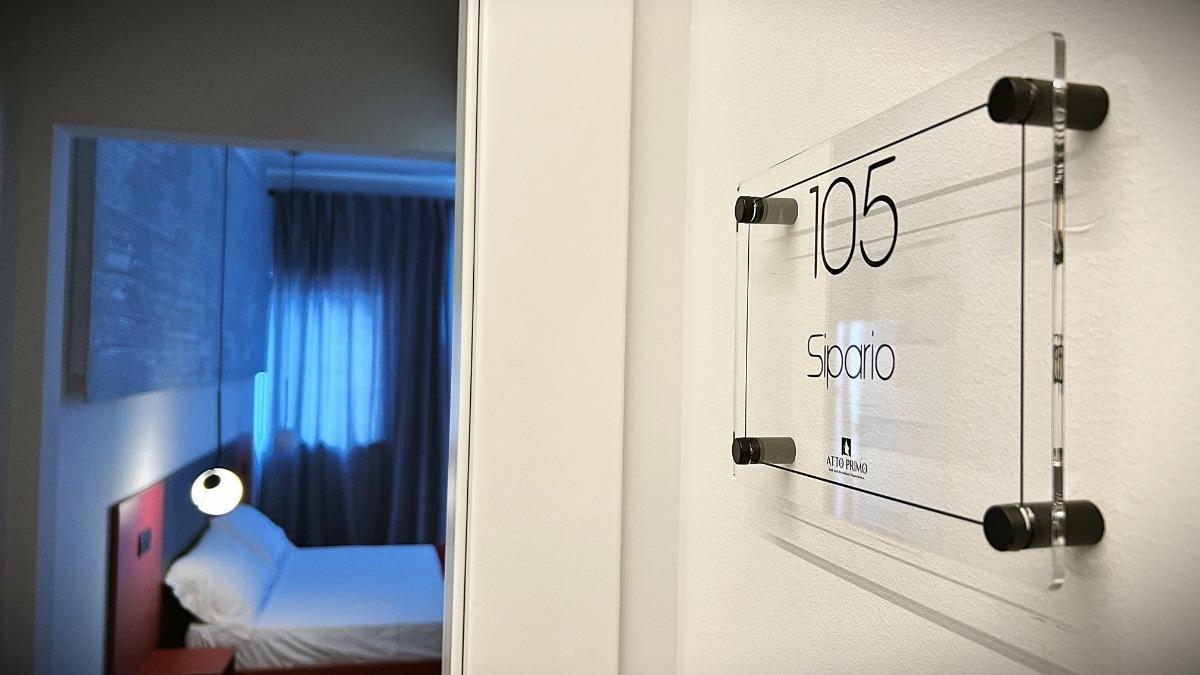 La Chambre Sipario est une élégante fusion de design moderne et de confort. Meublée avec des matériaux de haute qualité, elle se distingue par ses tons chauds de rouge et de bois de noyer, créant une atmosphère accueillante et raffinée.