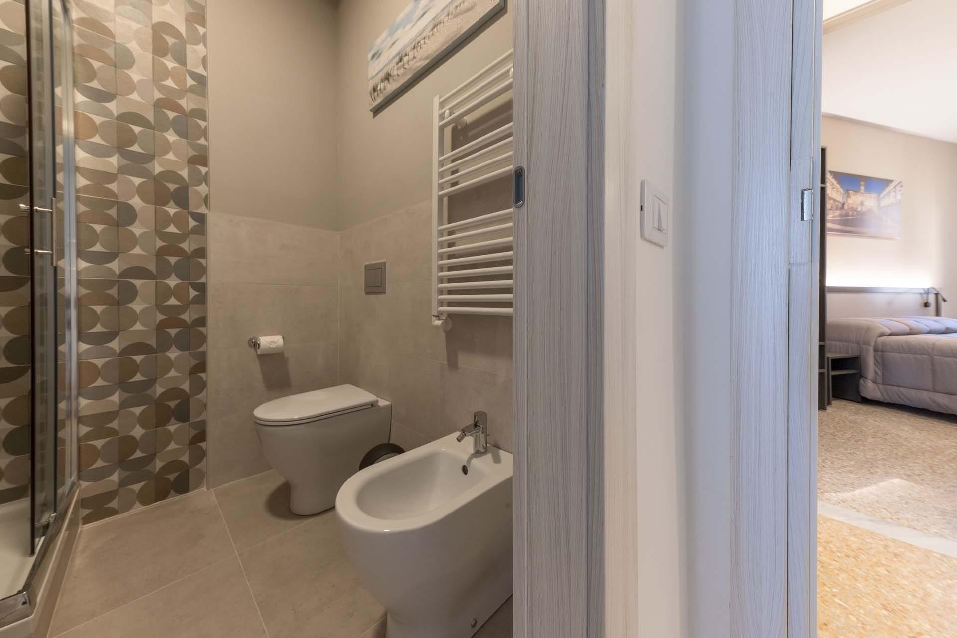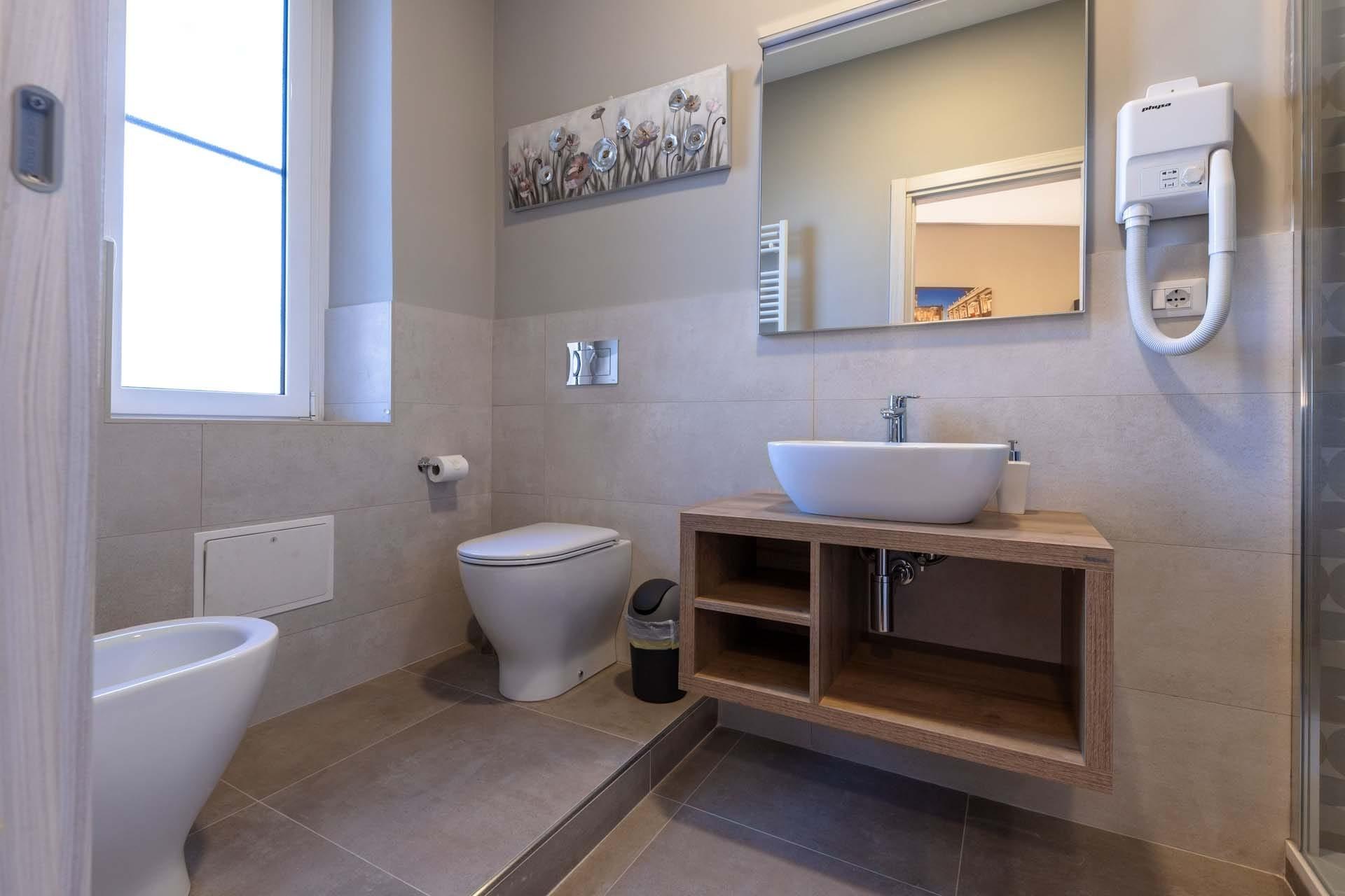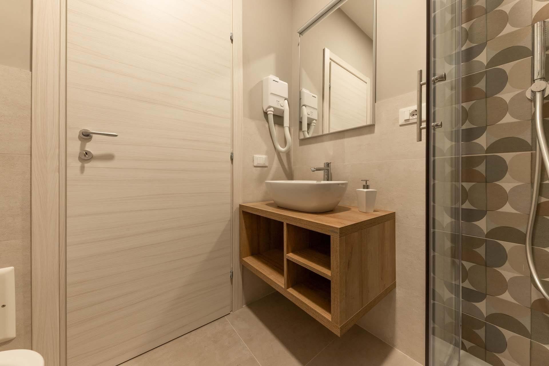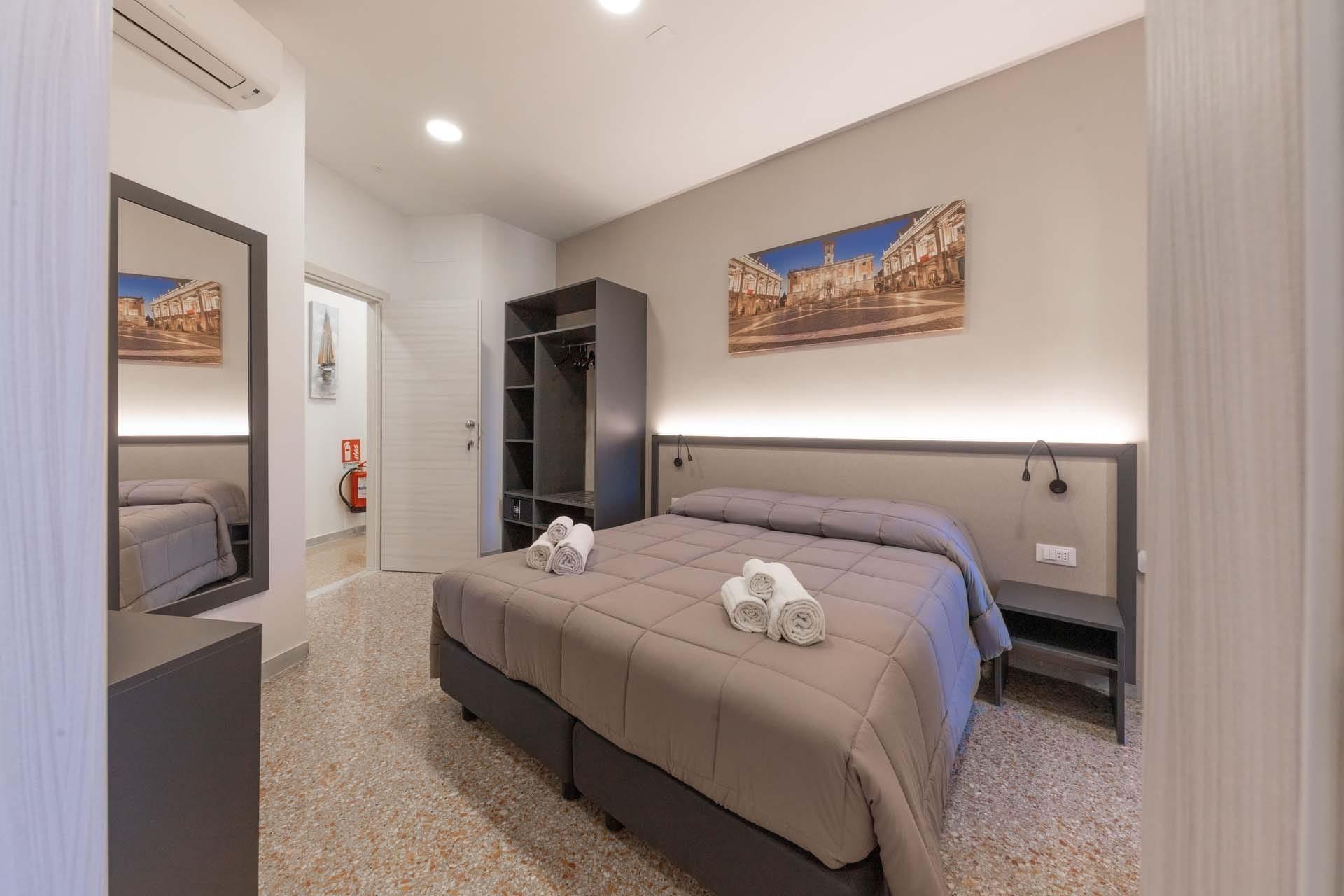 Very large room of 26 square meters with double bed, if necessary can be split into single beds on request and a daybed with integrated bed for a total of 3 beds, on request a cot for an infant, large bathroom with walk-in shower 80X160, glass shower box, hairdryer, balcony overlooking the square furnished with table, sunshade and chairs. Air conditioning, smart TV, kettle and Nespresso. free wifi