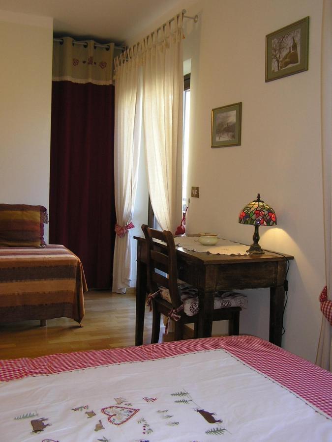 Die Zimmer sind liebevoll und detailreich eingerichtet und funktional und gemütlich. Jedes Zimmer verfügt über ein Doppelbett und ein Einzelbett für insgesamt sechs Schlafplätze. Die Einrichtung erinnert an traditionelle Spielzeuge des Aostatals, um unseren Gästen das lokale kulturelle Erbe näher zu bringen und die Besonderheiten der Region zu schätzen. Jedes Zimmer verfügt über ein privates Badezimmer, das den Gästen mit Dusche oder Badewanne, Waschbecken, Bidet und WC zur Verfügung steht.